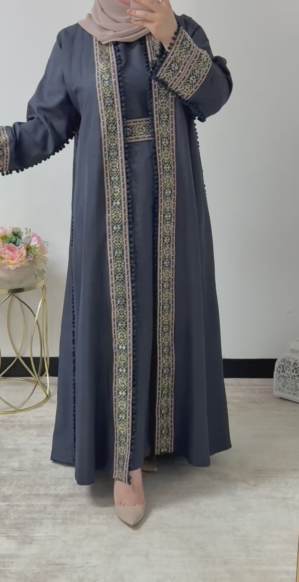 Festive Eid Embroidered Abaya Set
