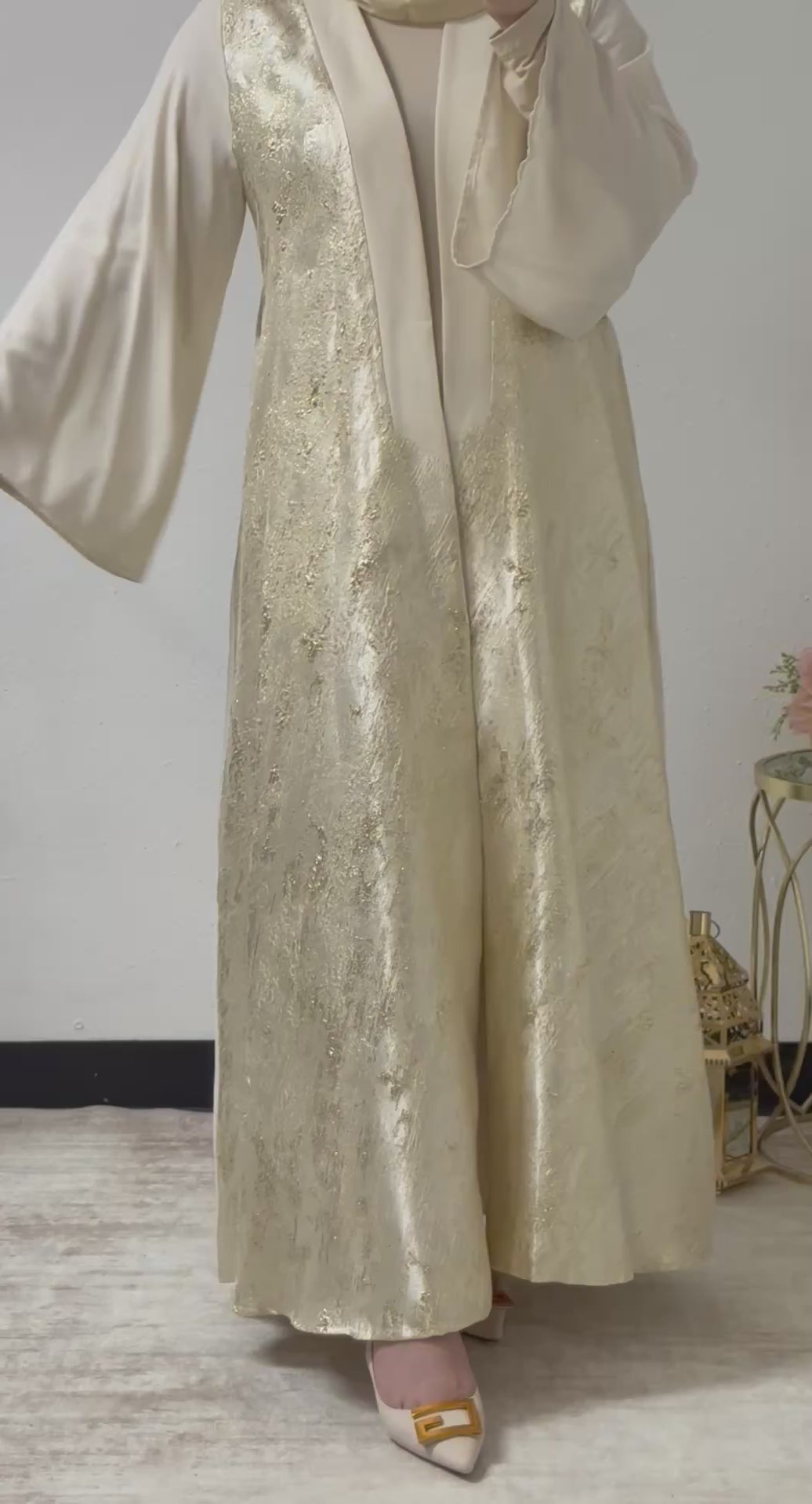 Gold accent open abaya