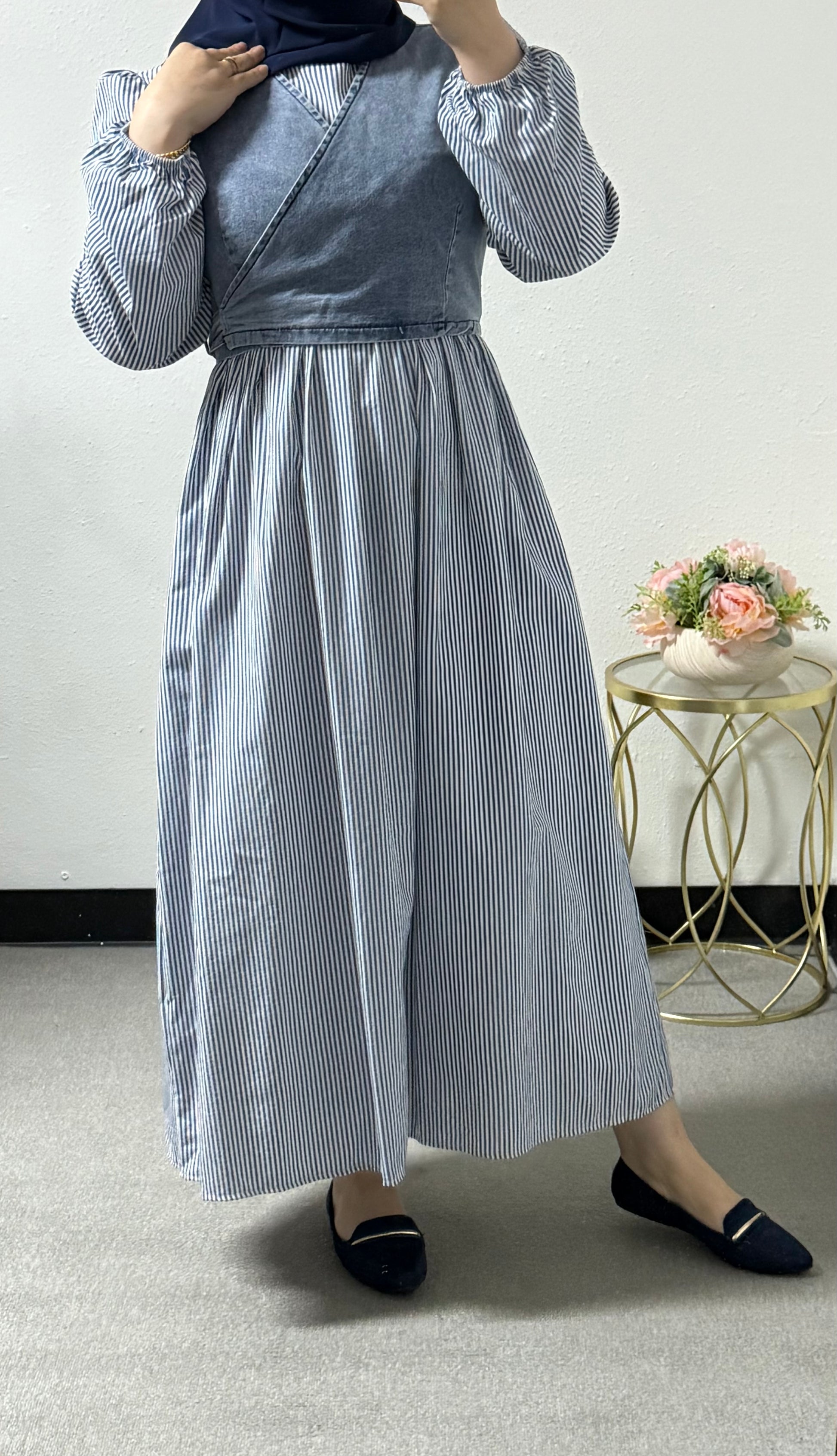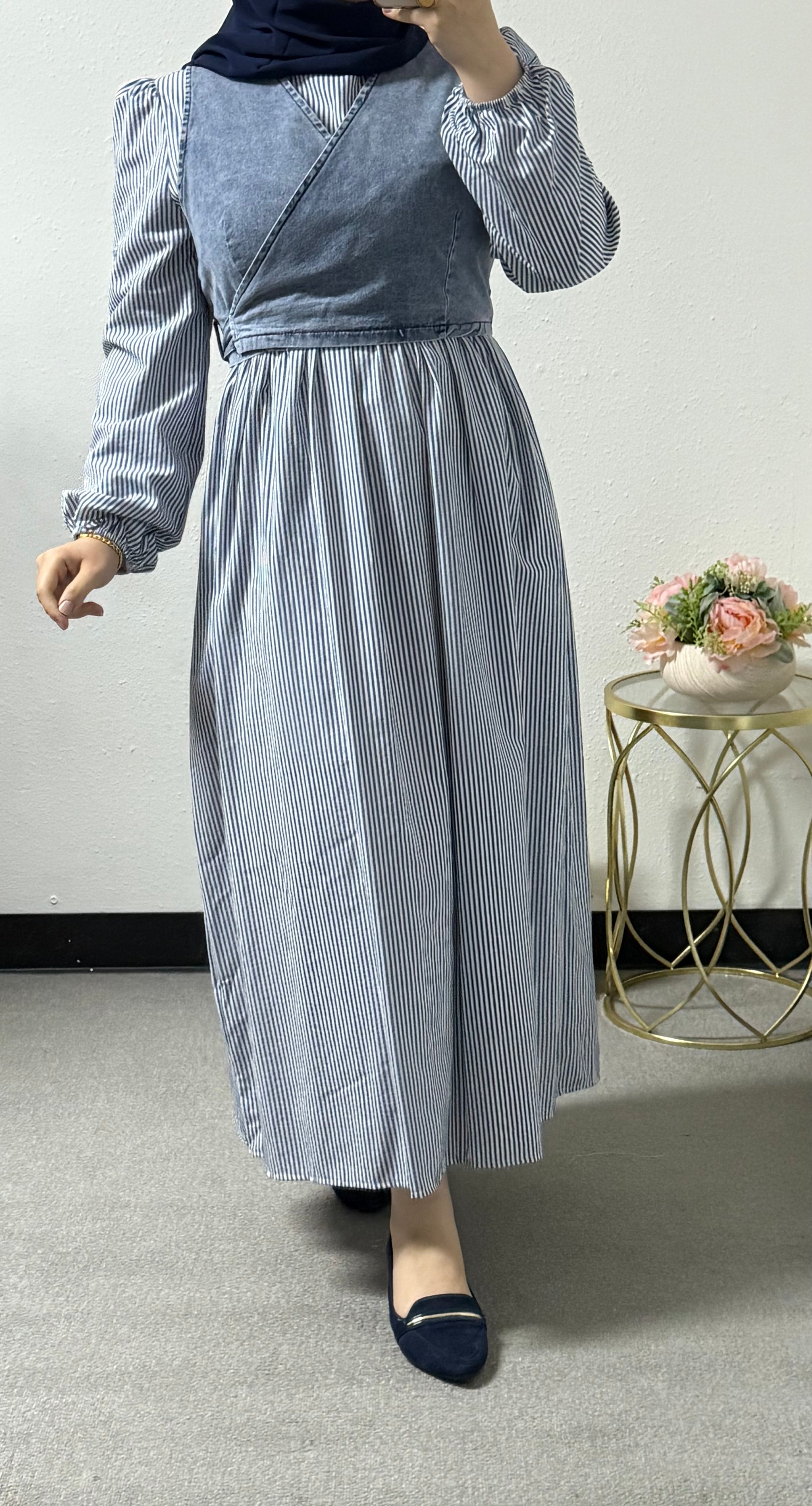 Jean vest stripes dress