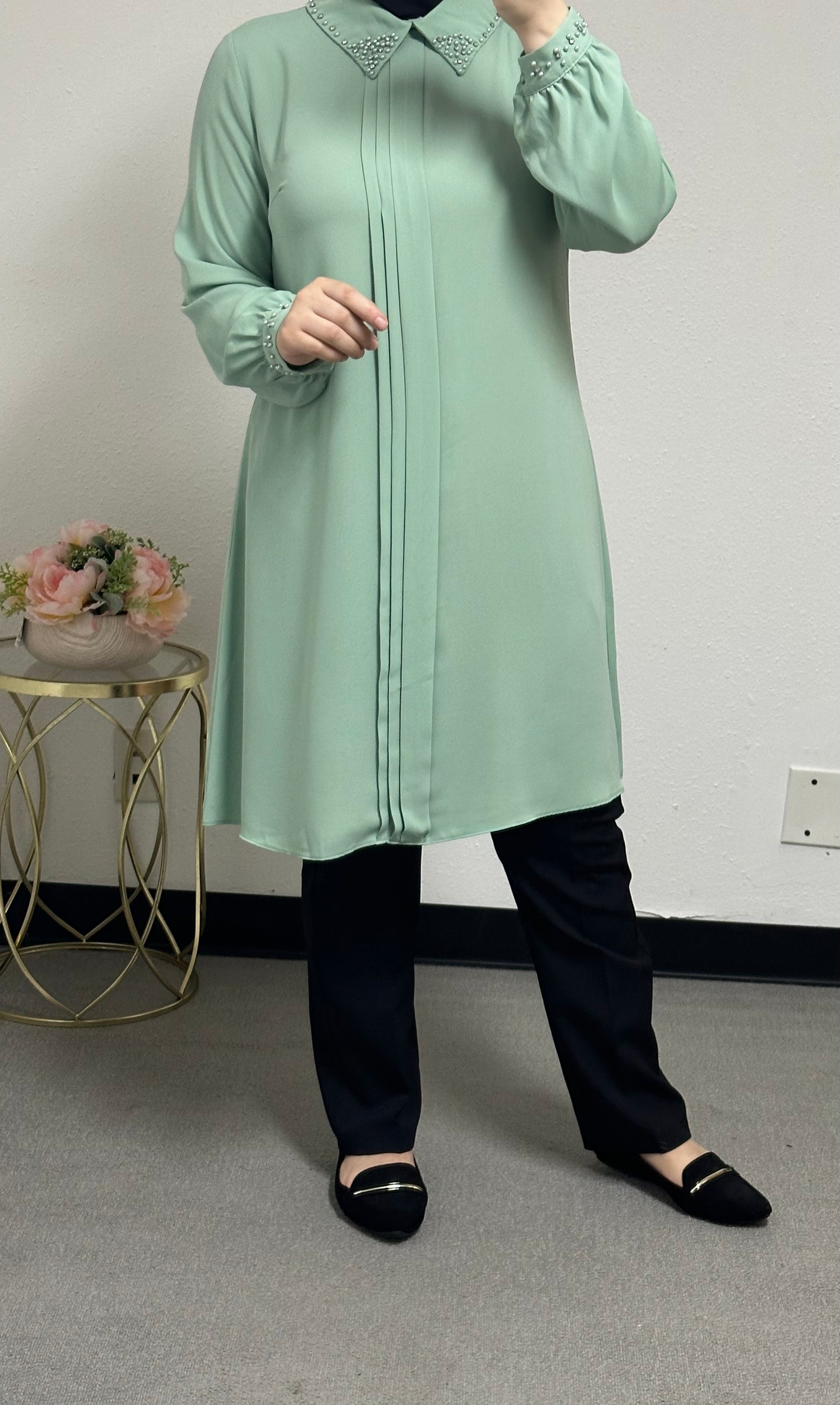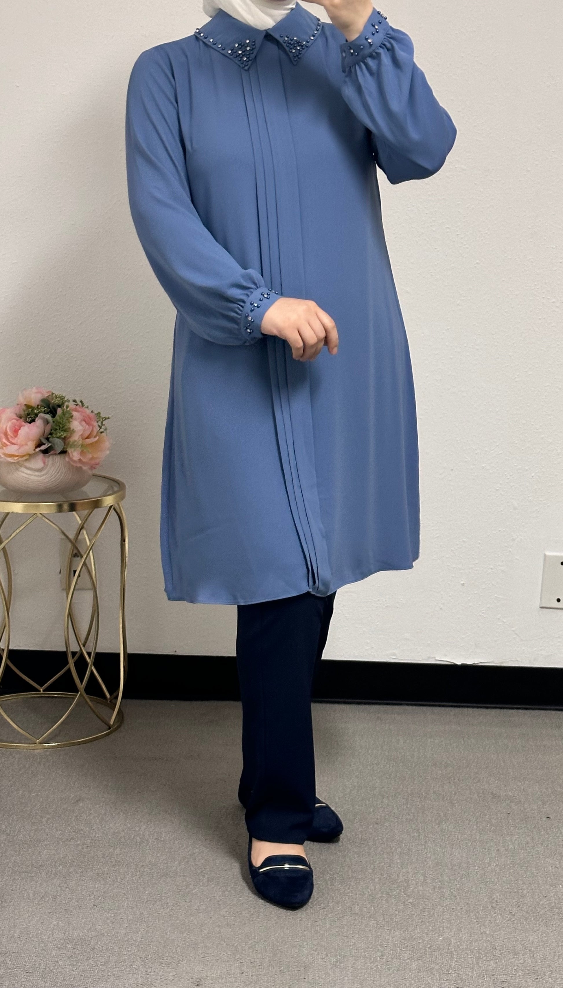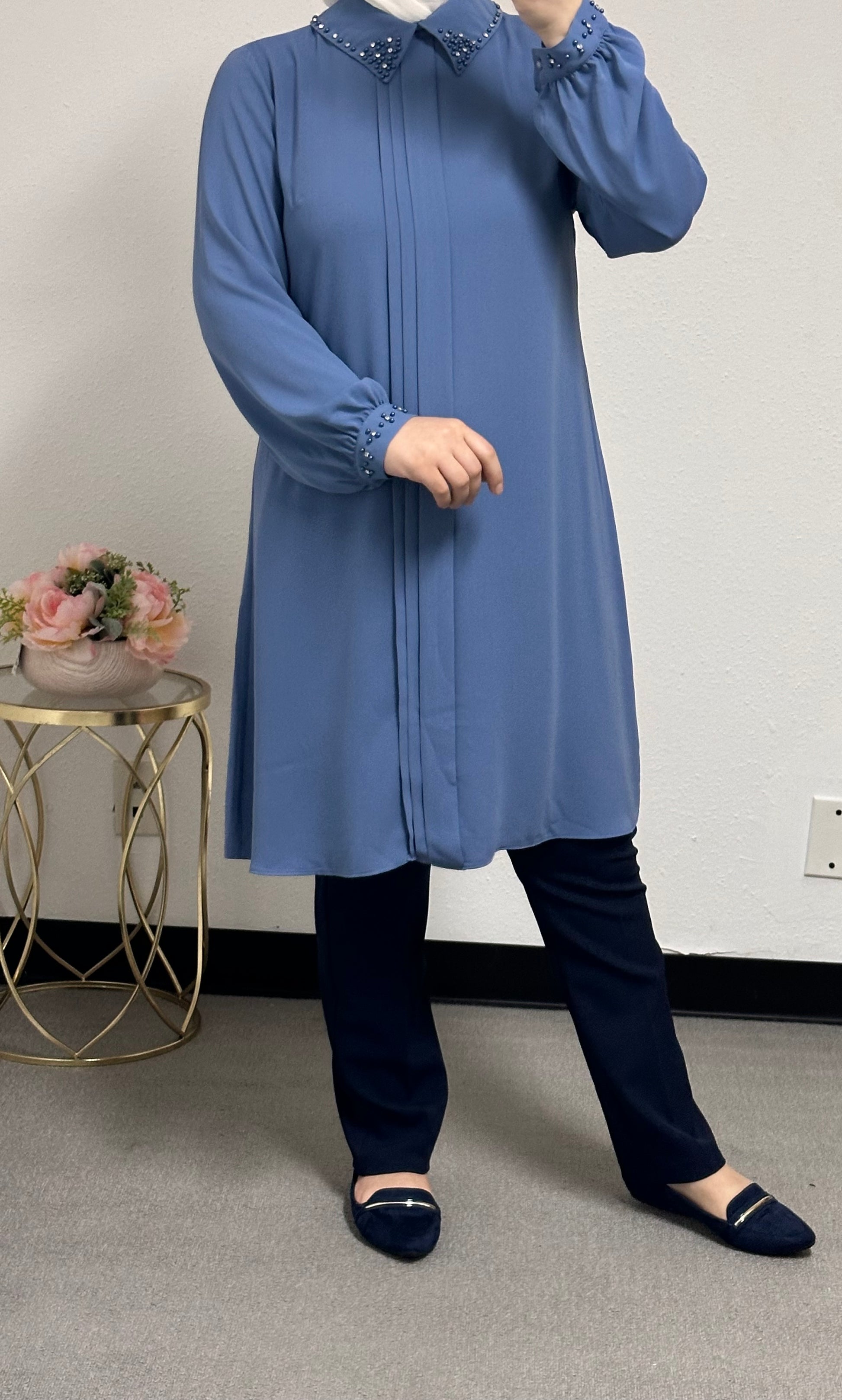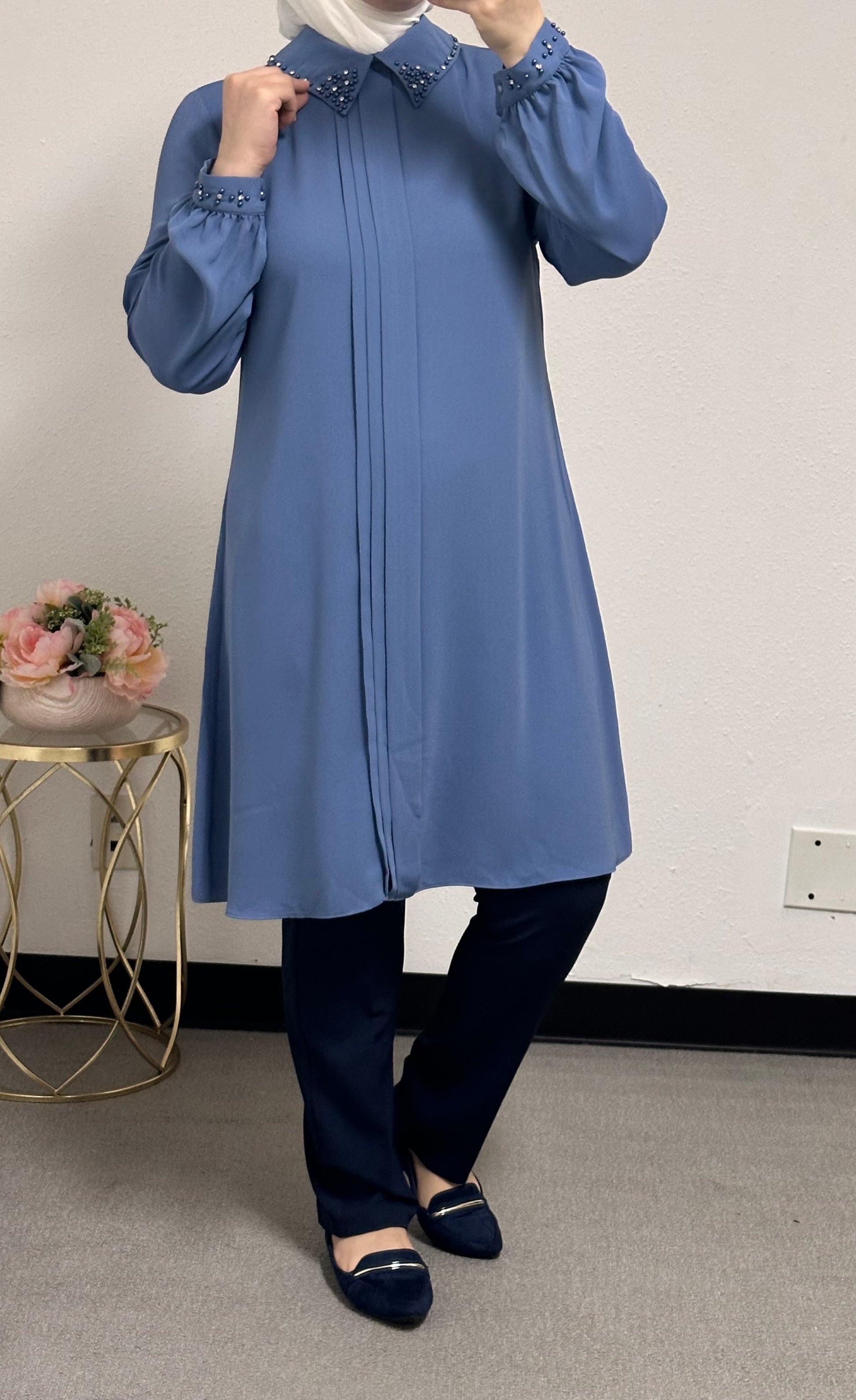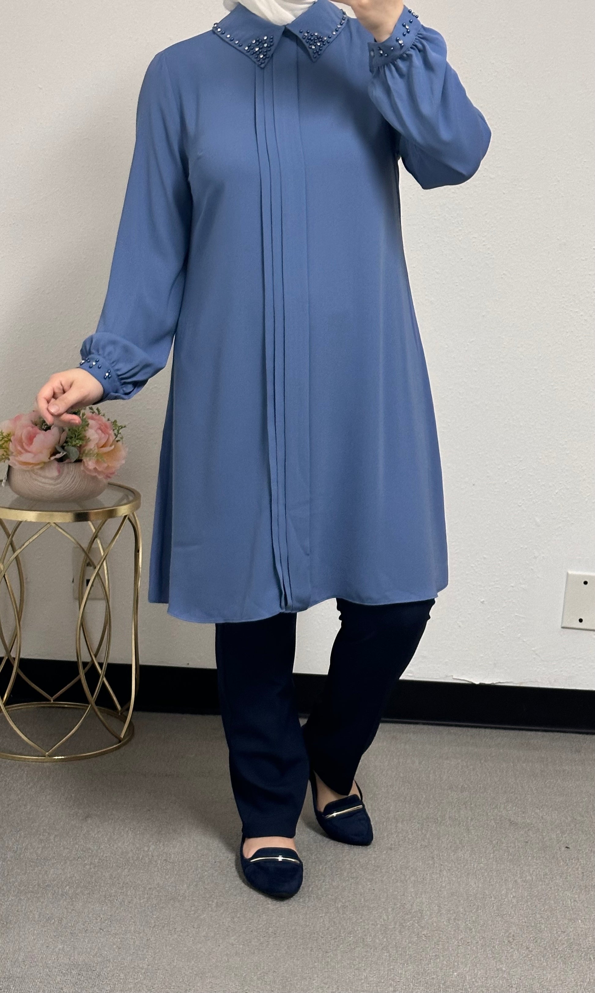long blouse collar pearl adorned