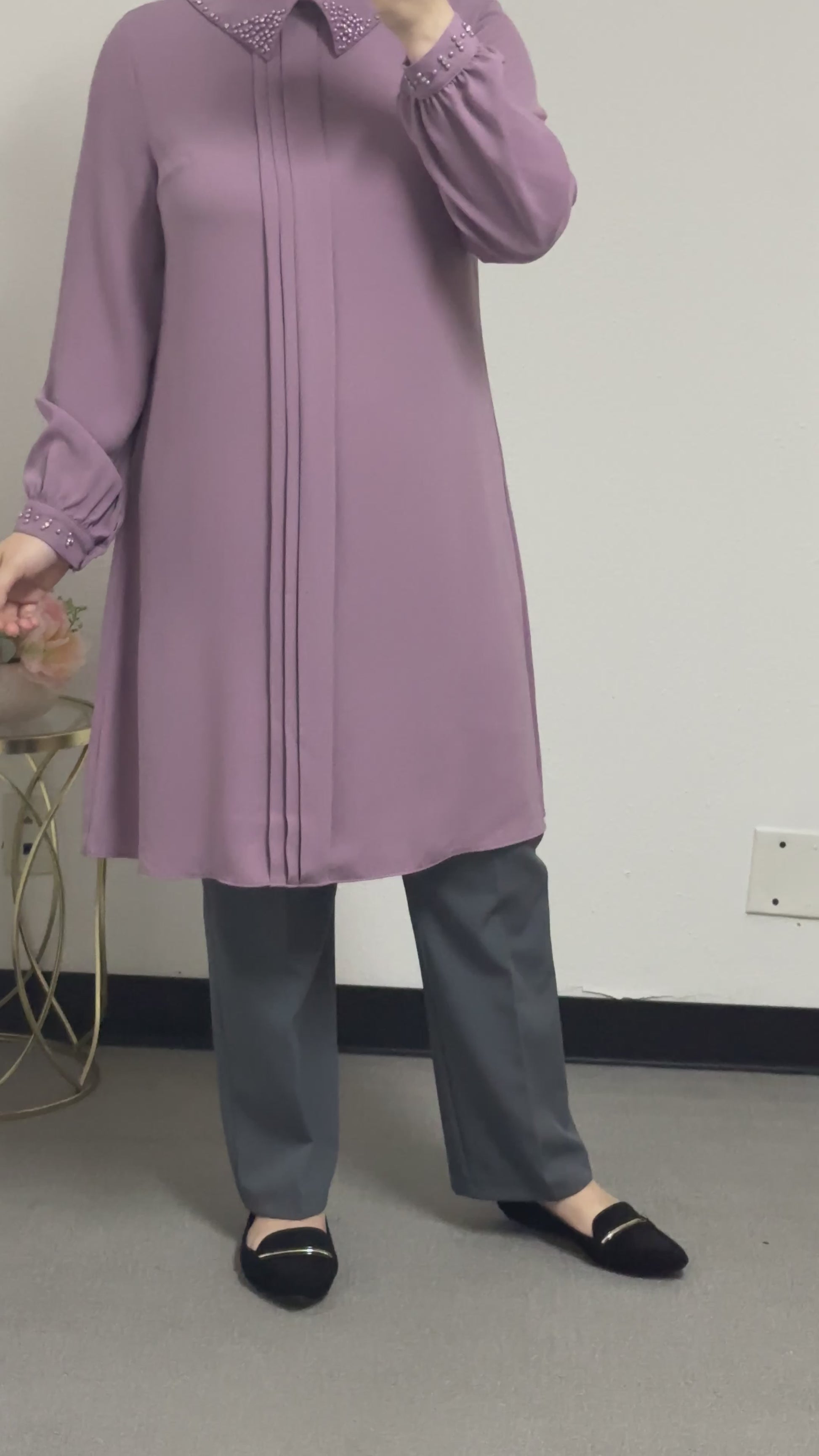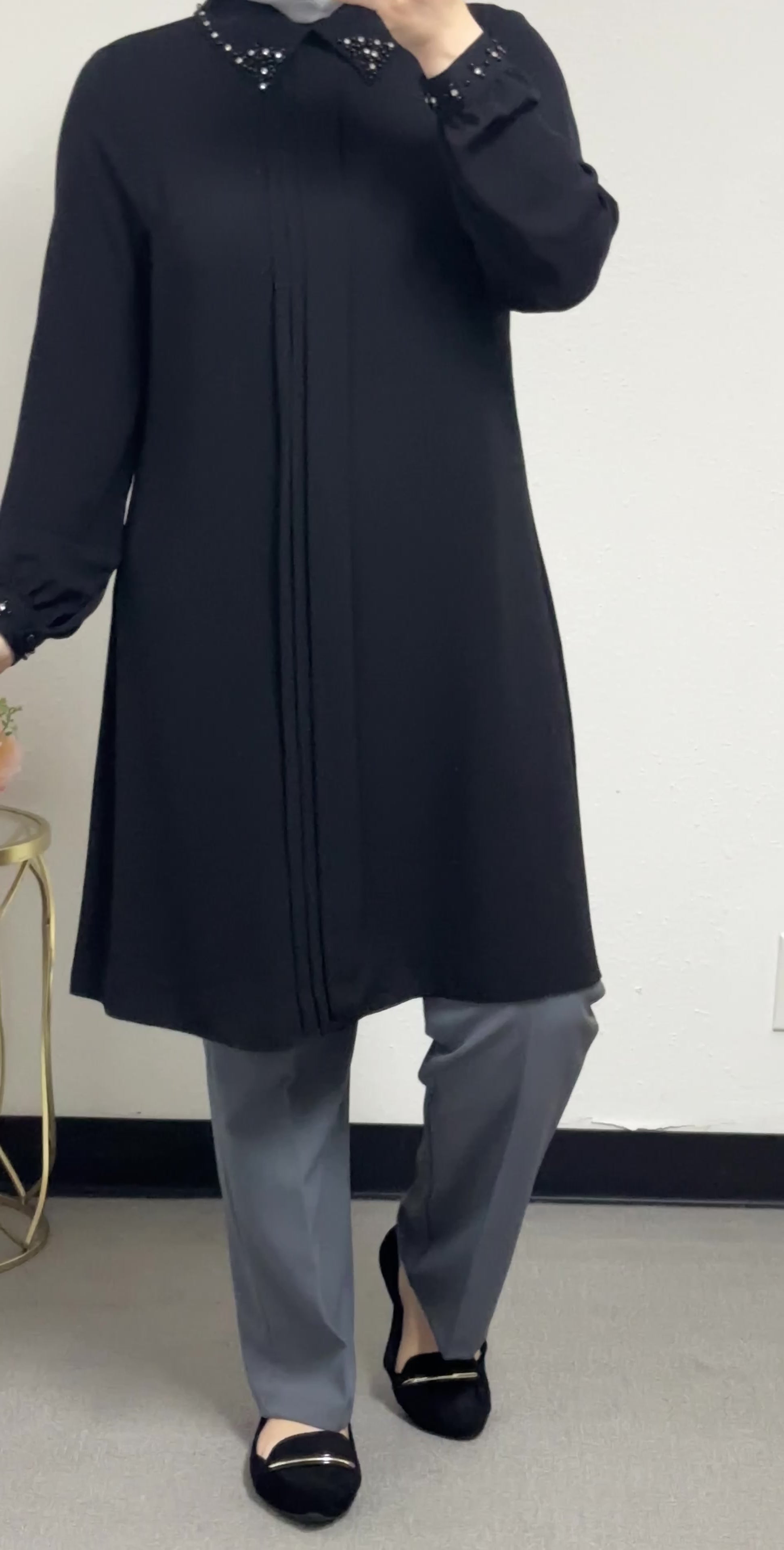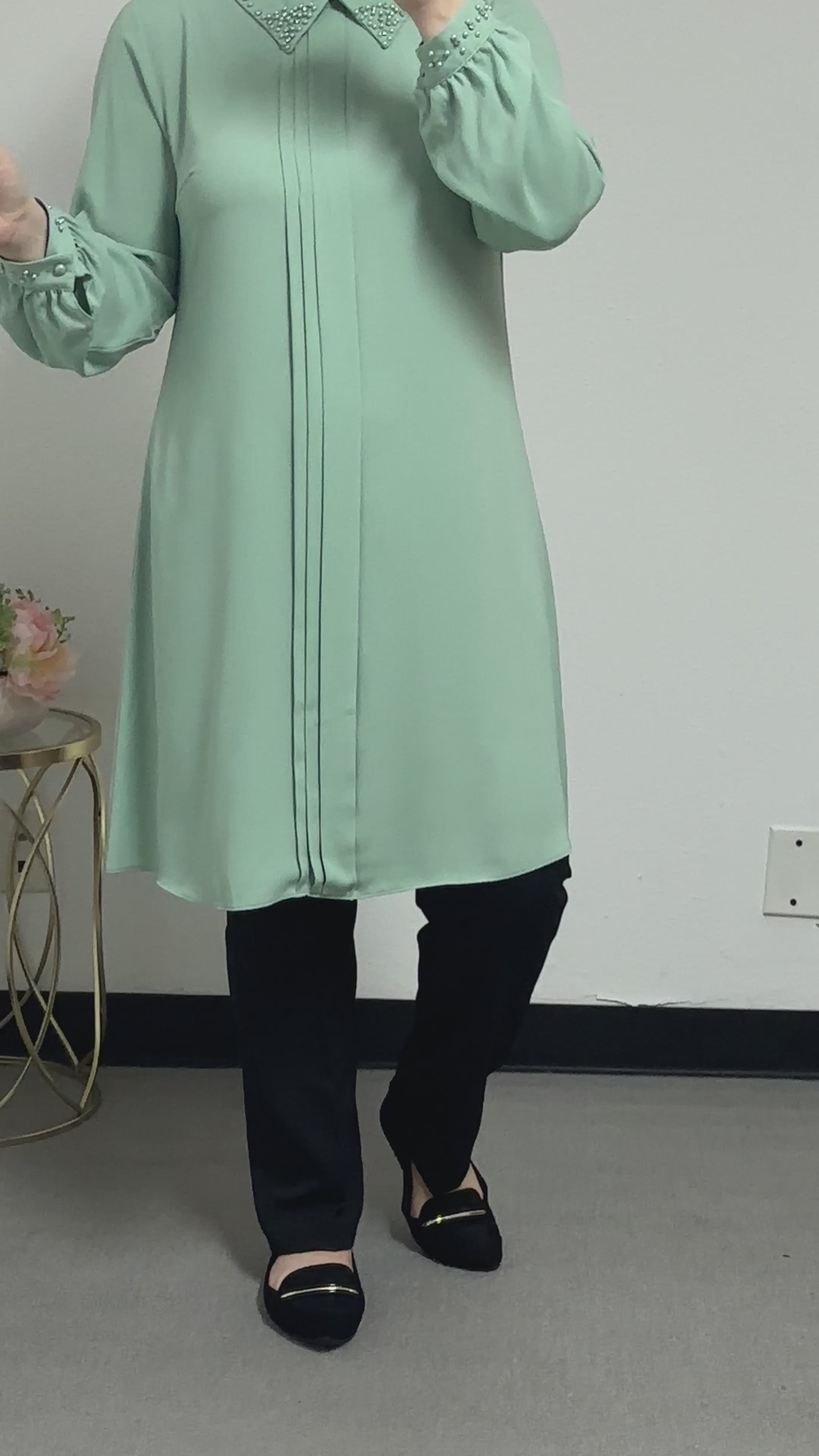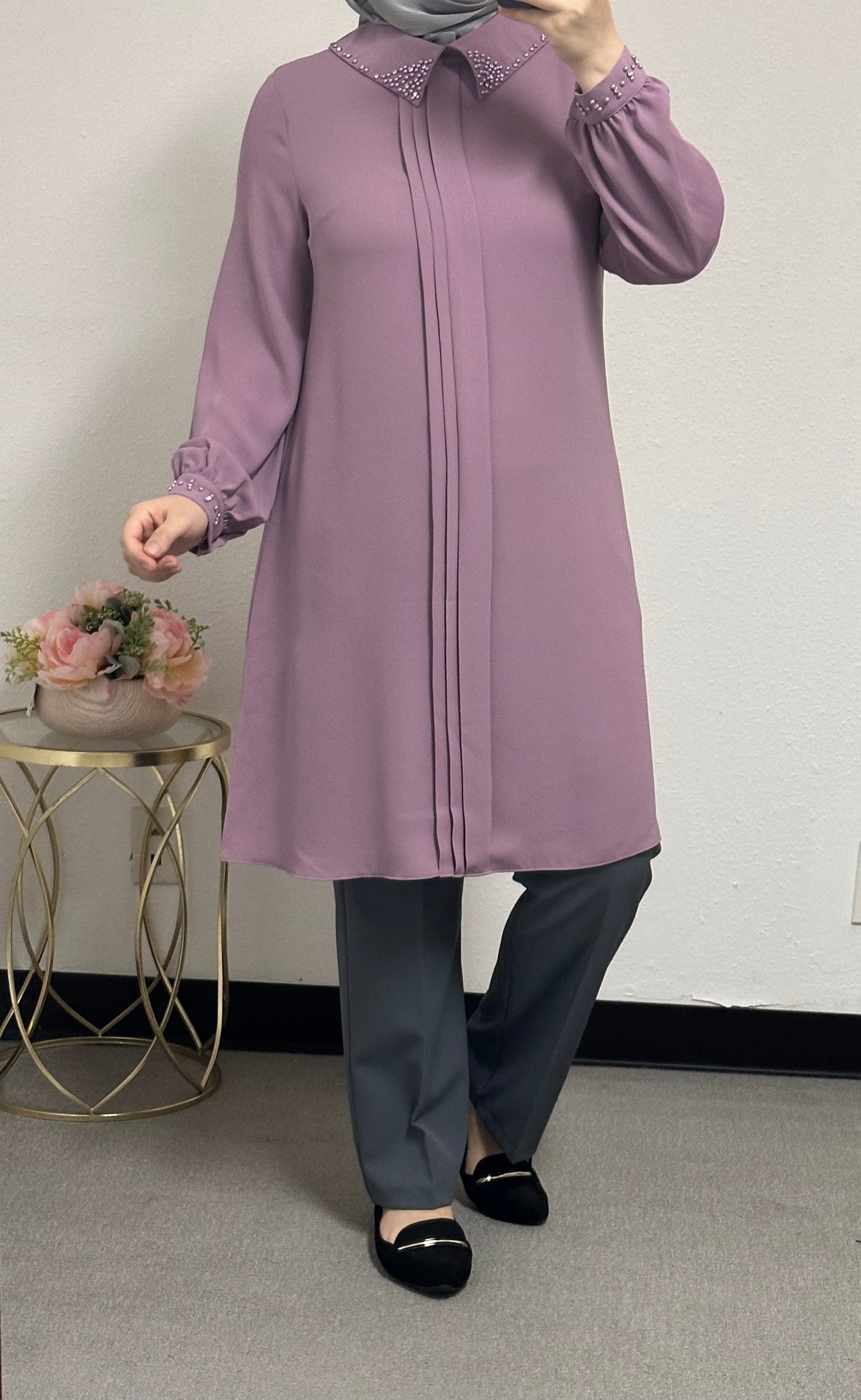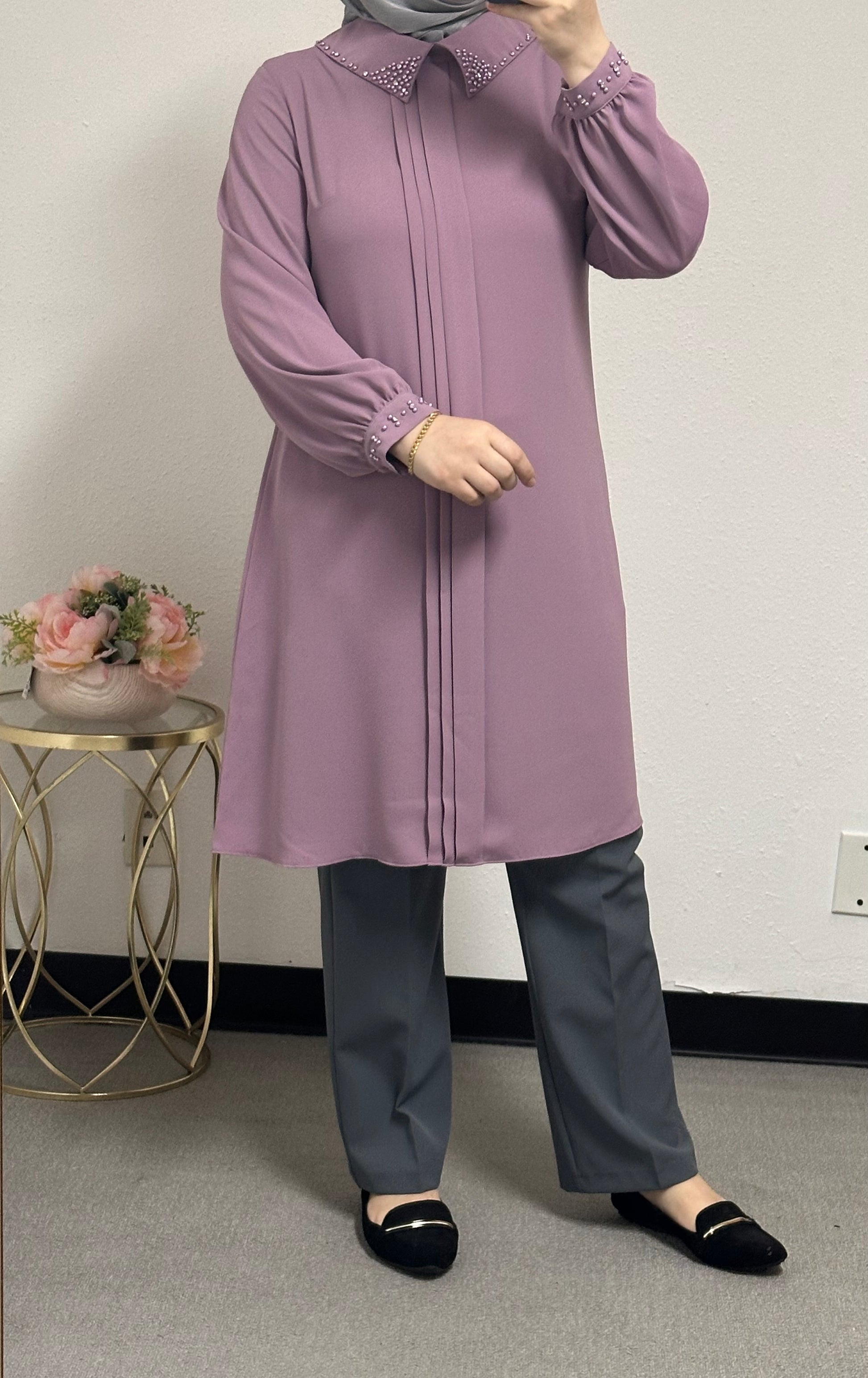 long blouse collar pearl adorned
