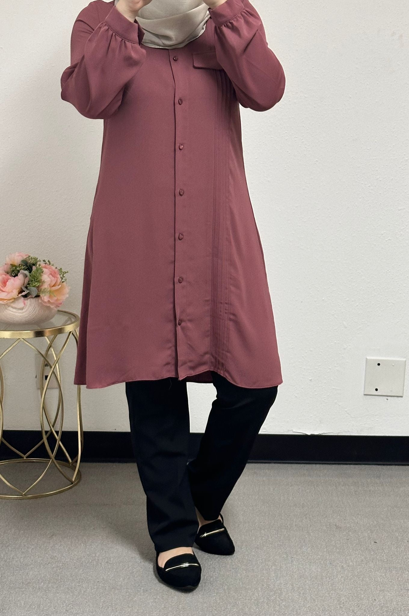 Long blouse with front bucket