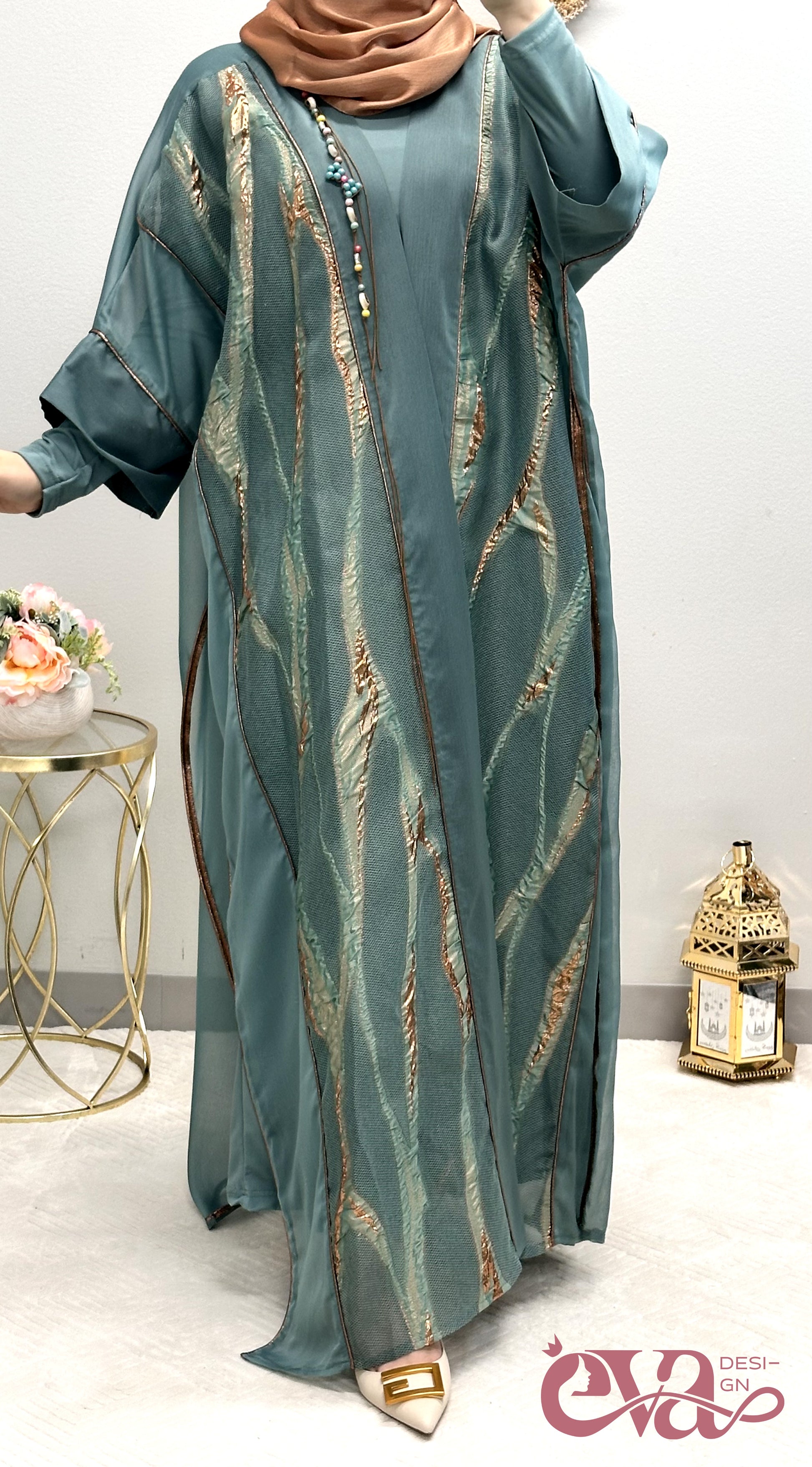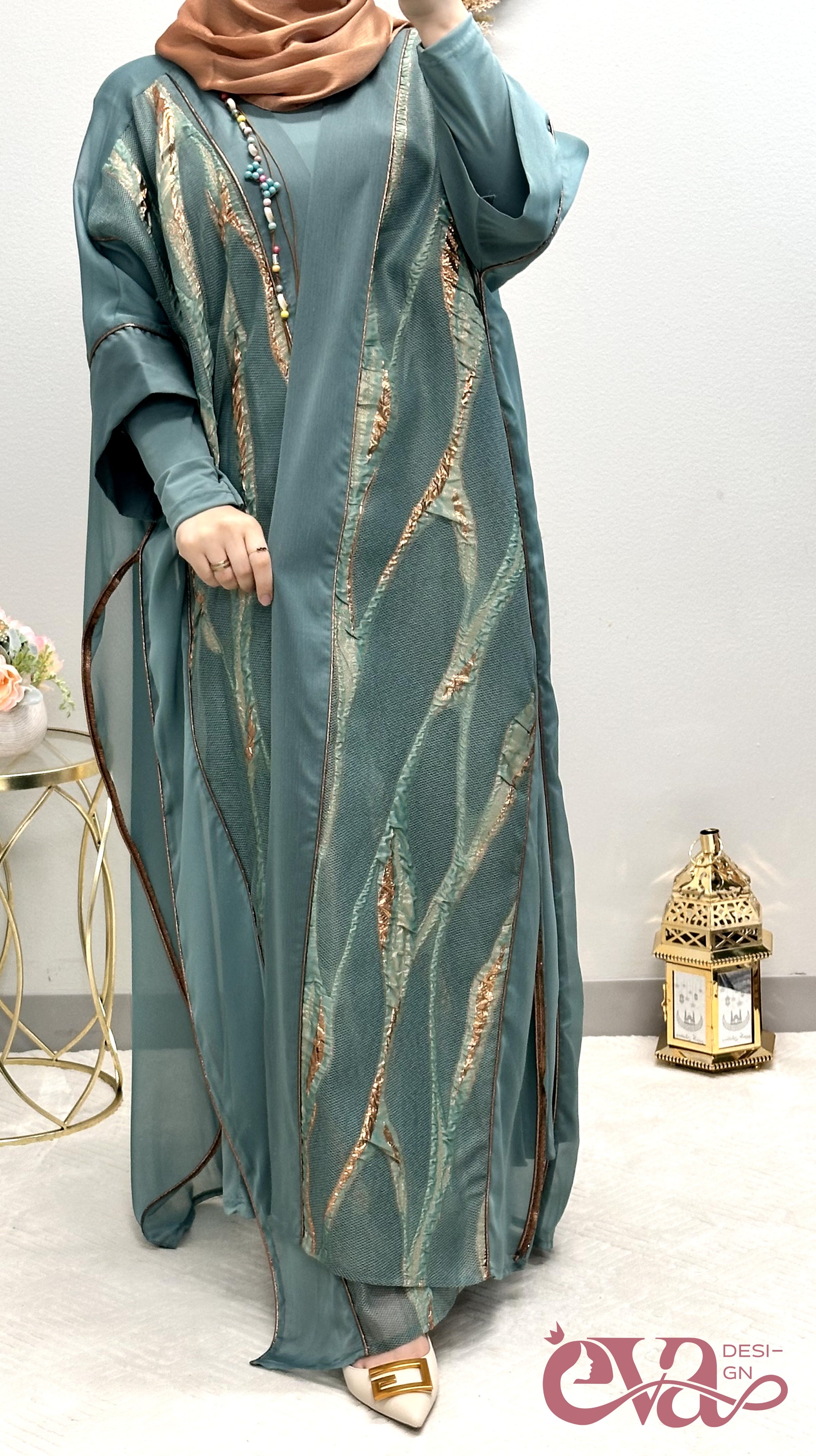 عباية مفتوحة أخضر 2 قطعة