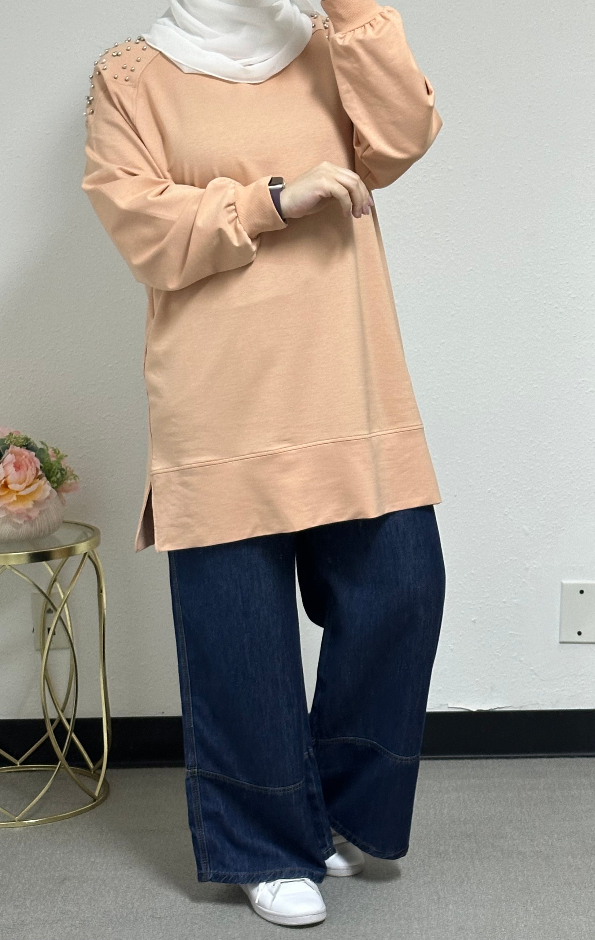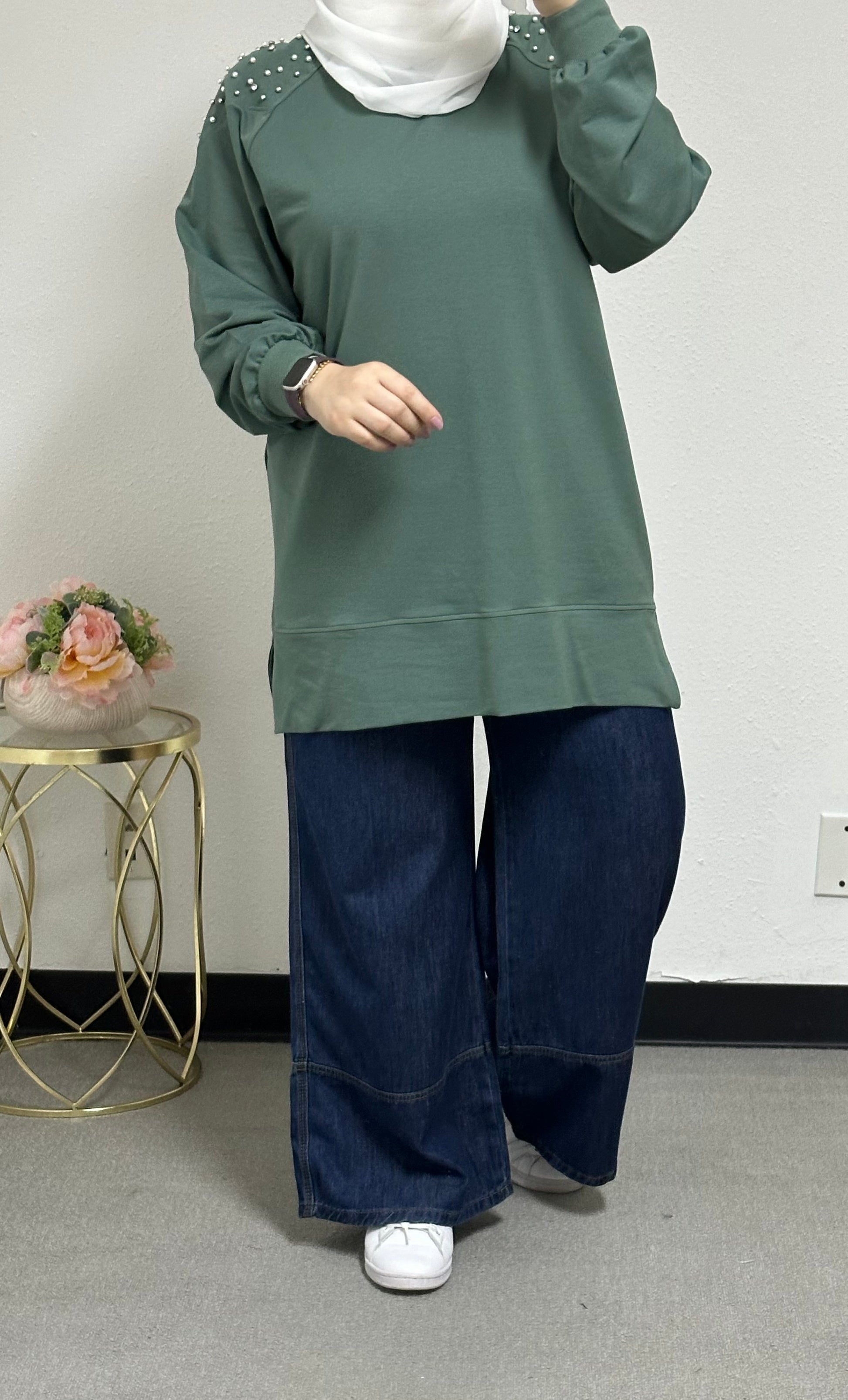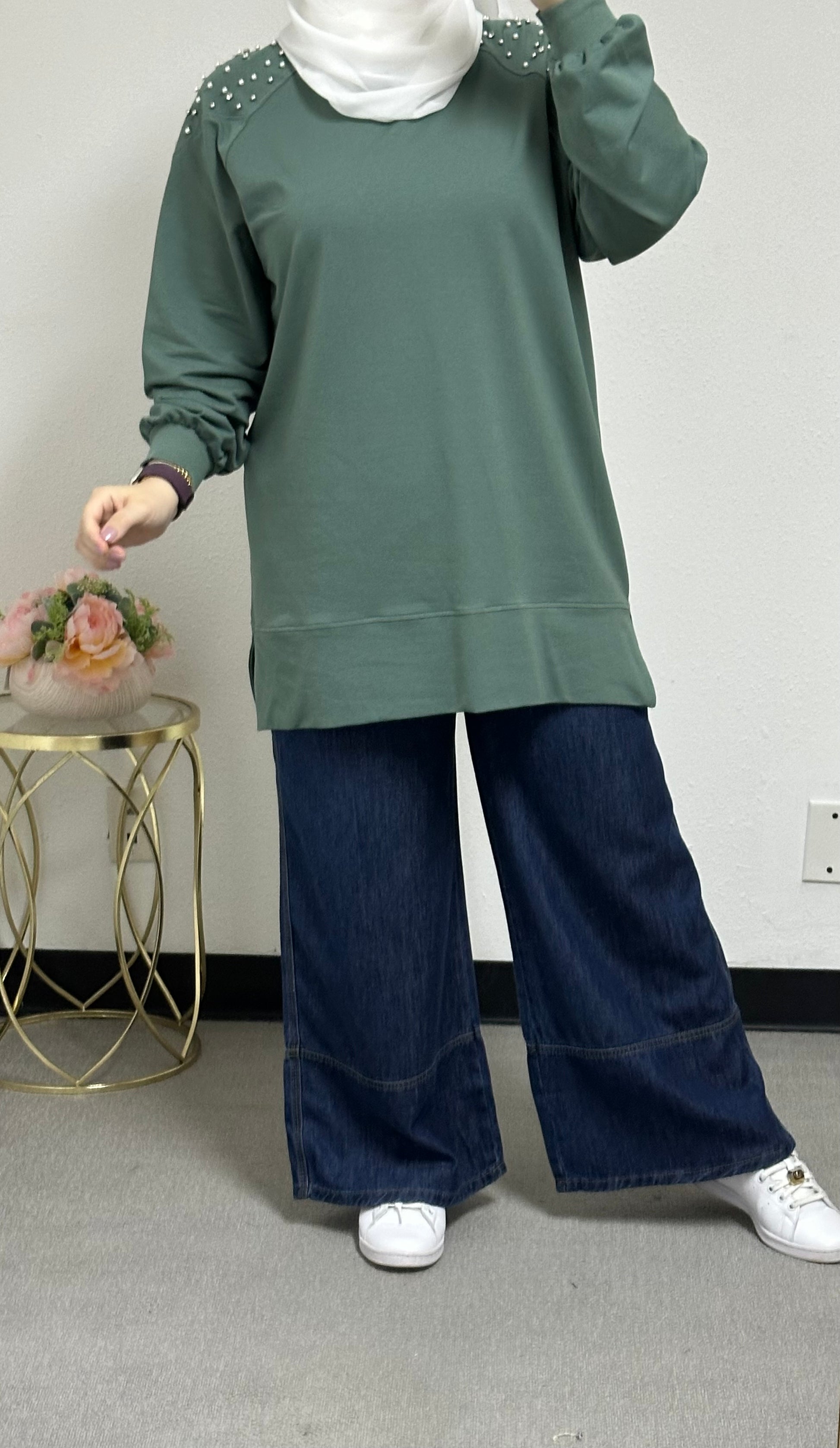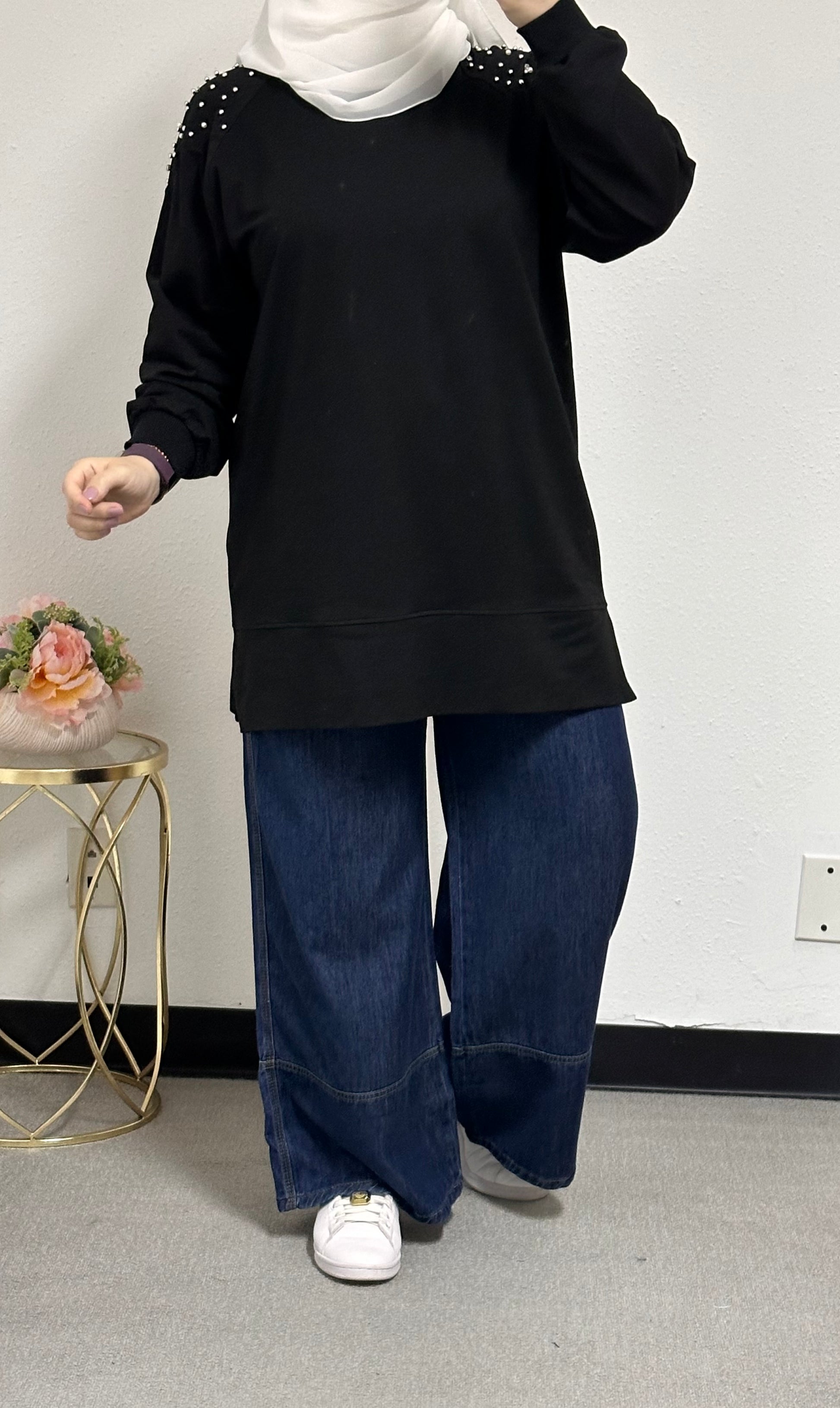 Sweatshirt with pearl embellishments on the front