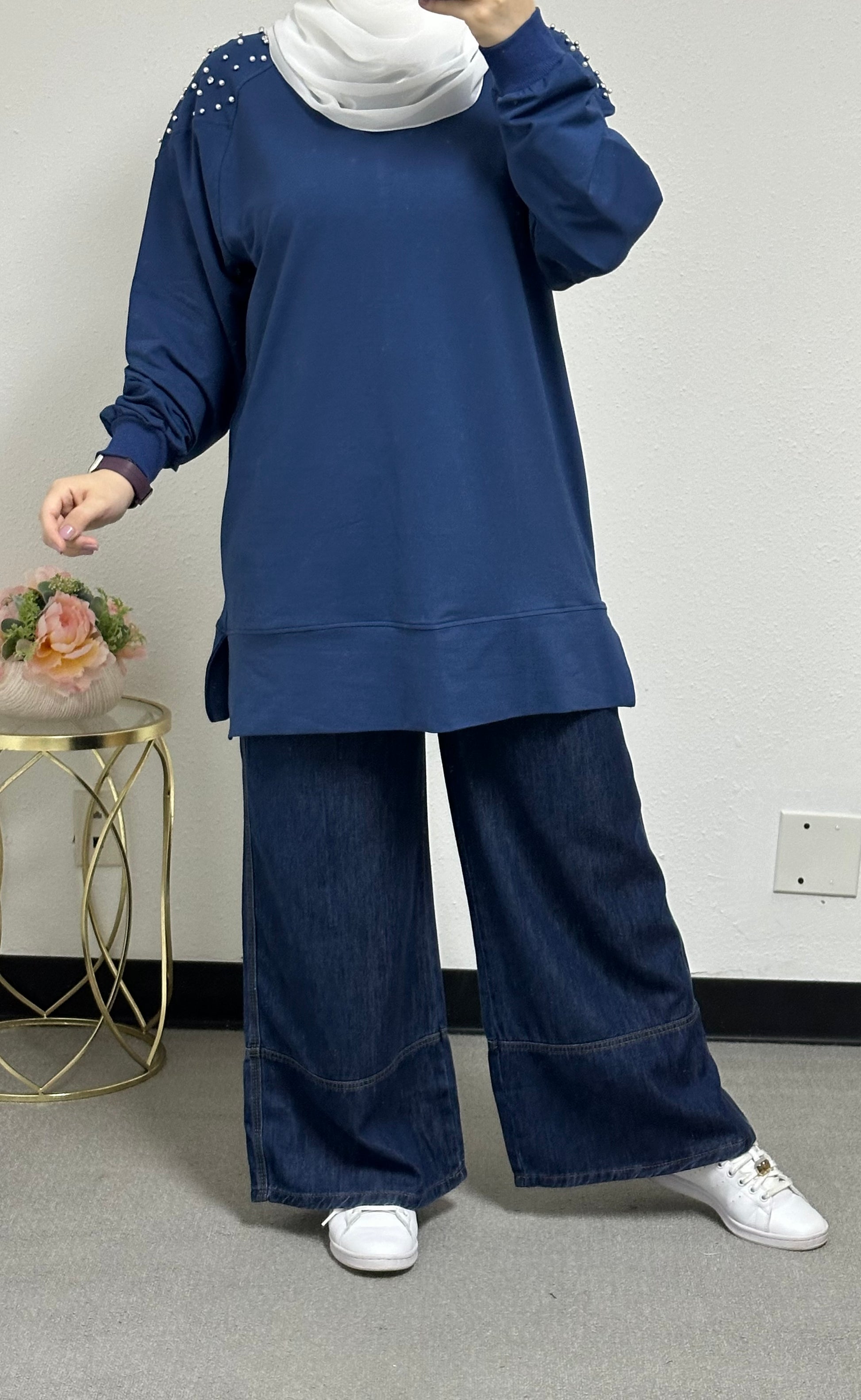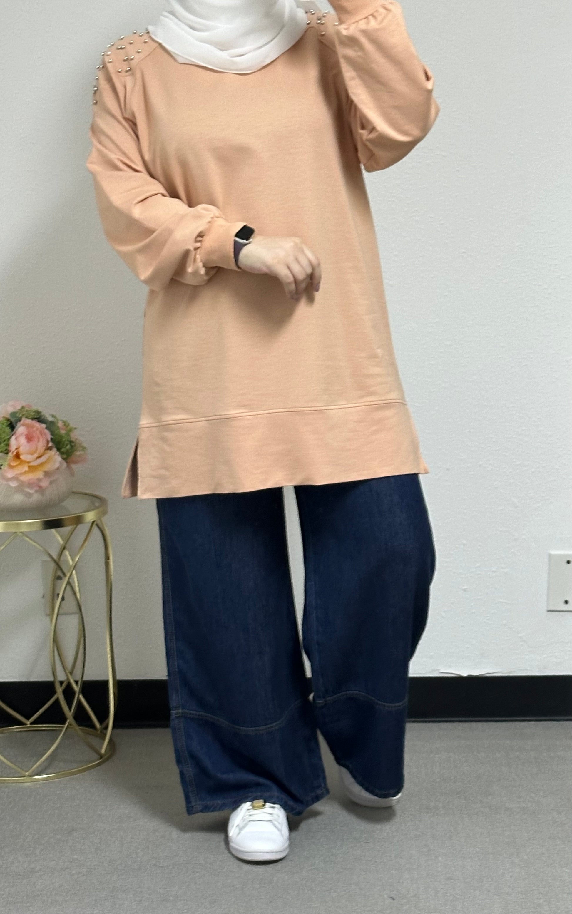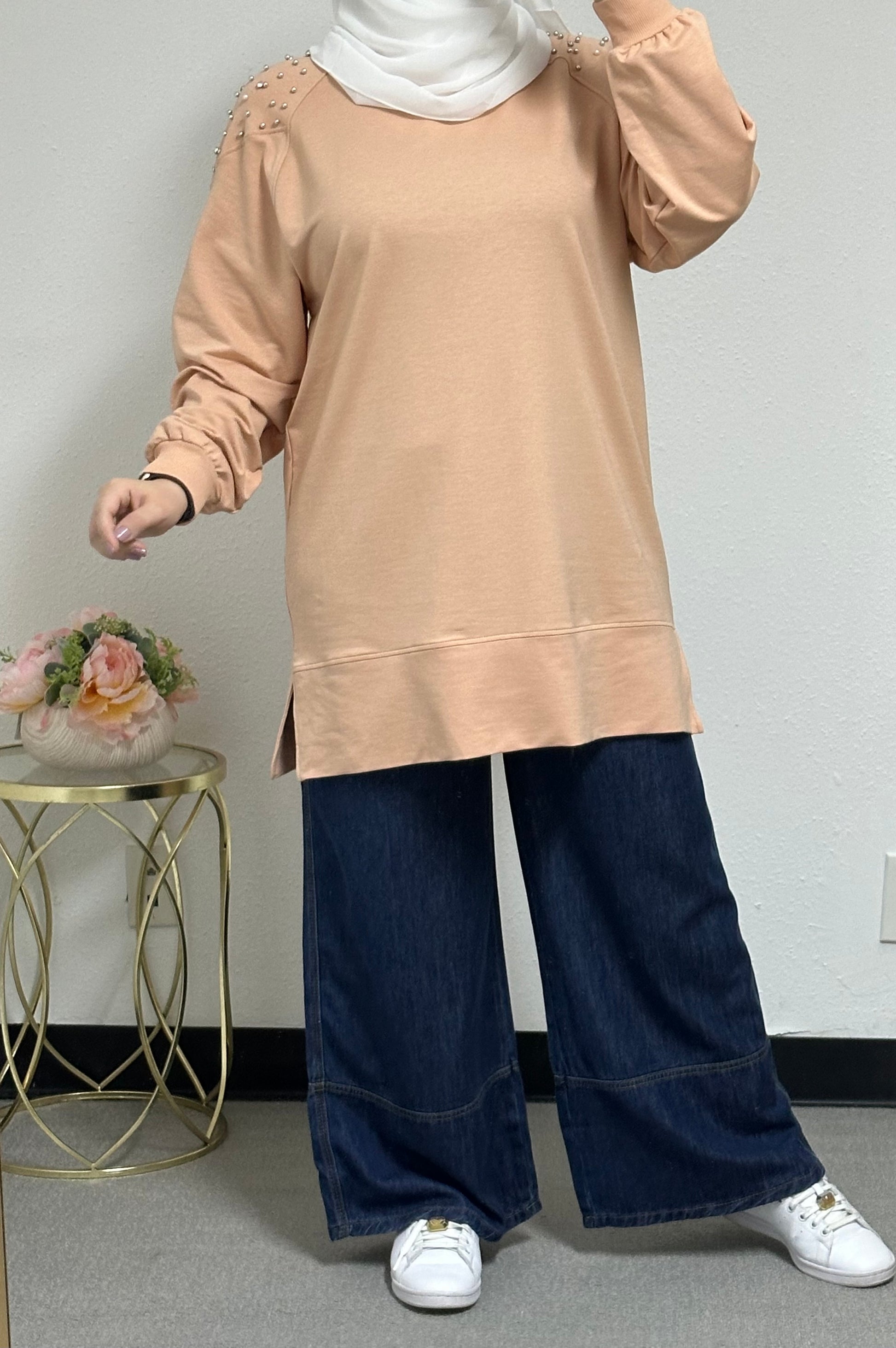 Sweatshirt with pearl embellishments on the front
