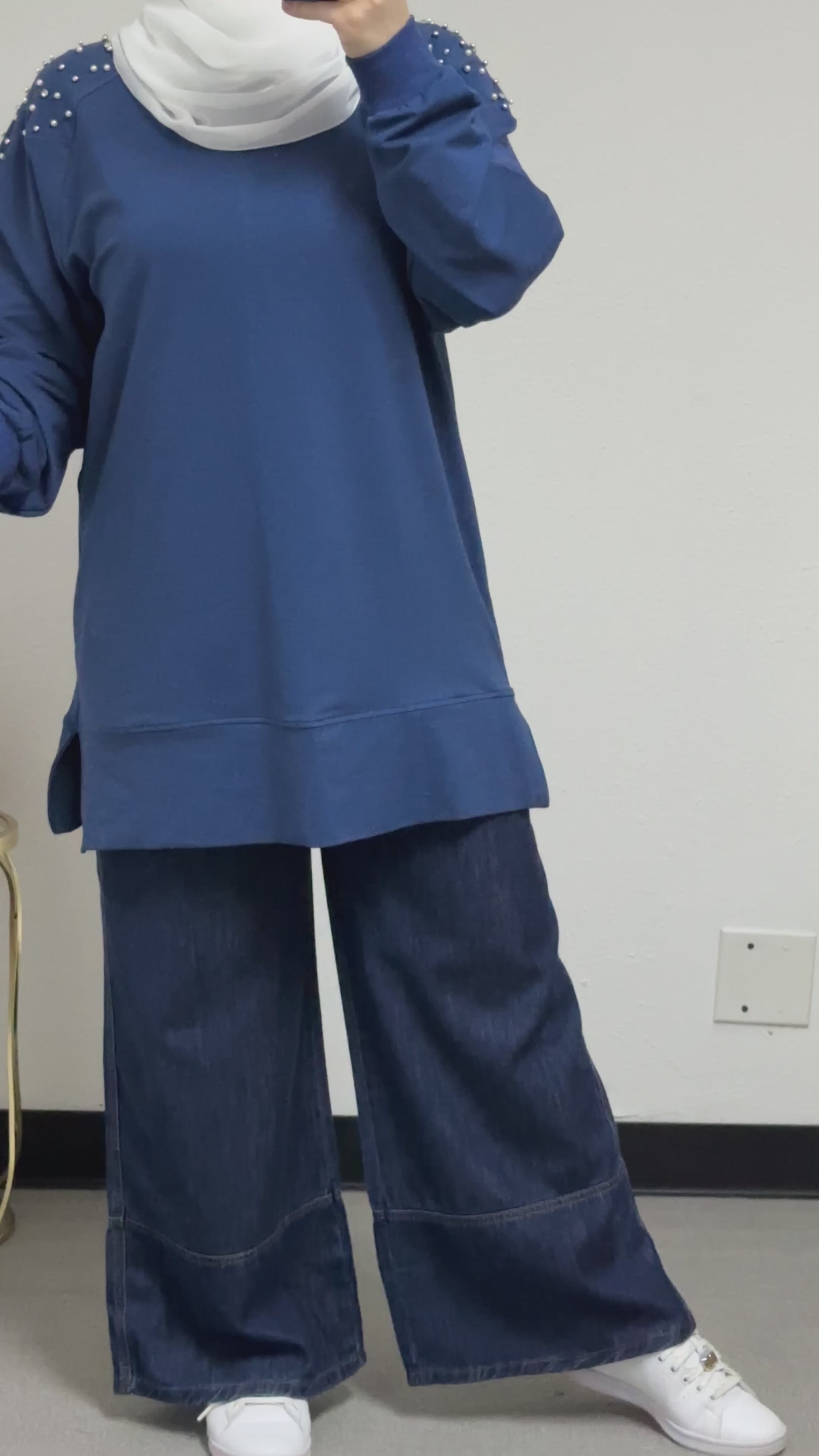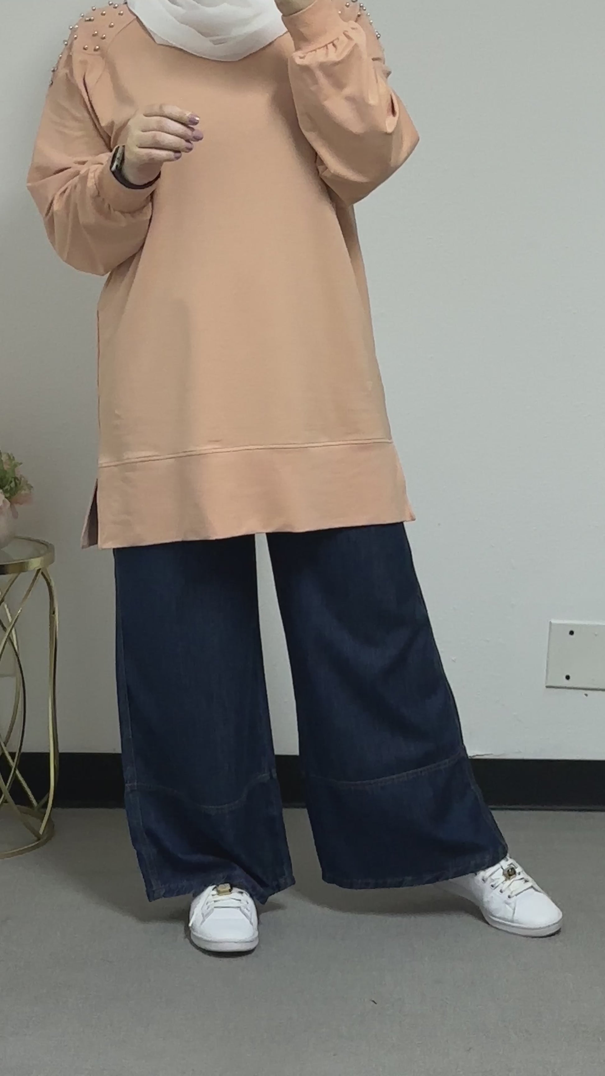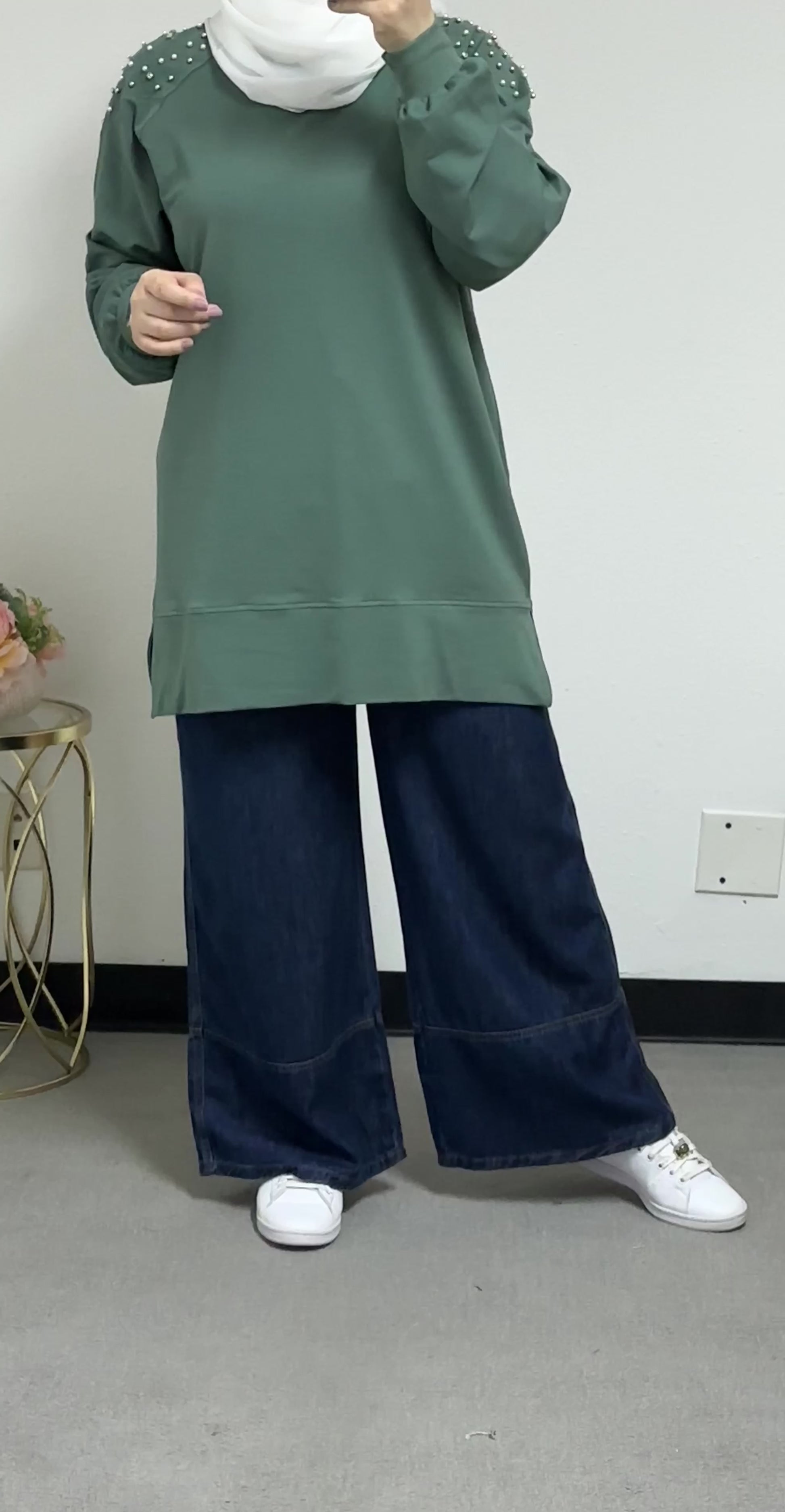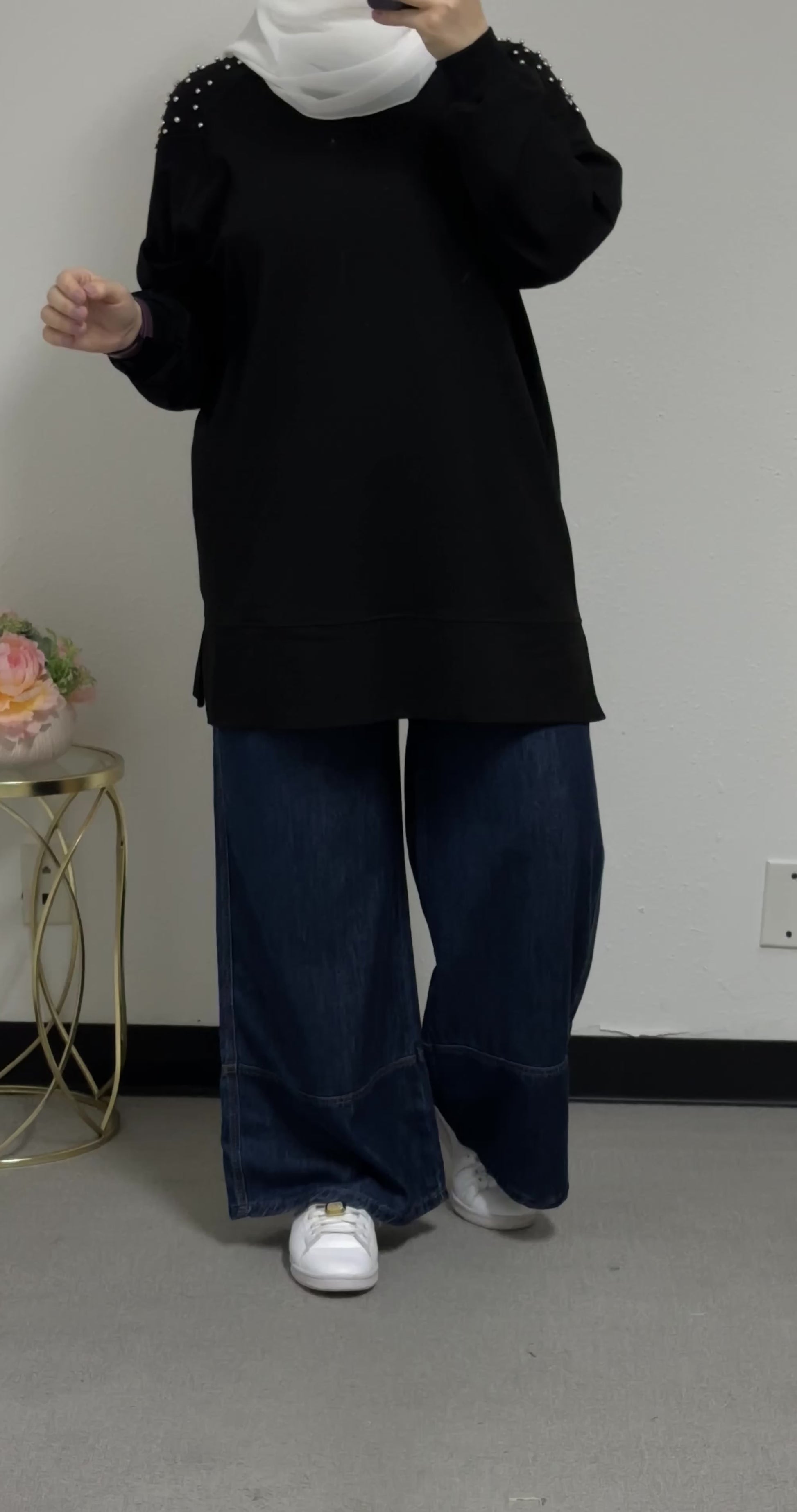 Sweatshirt with pearl embellishments on the front