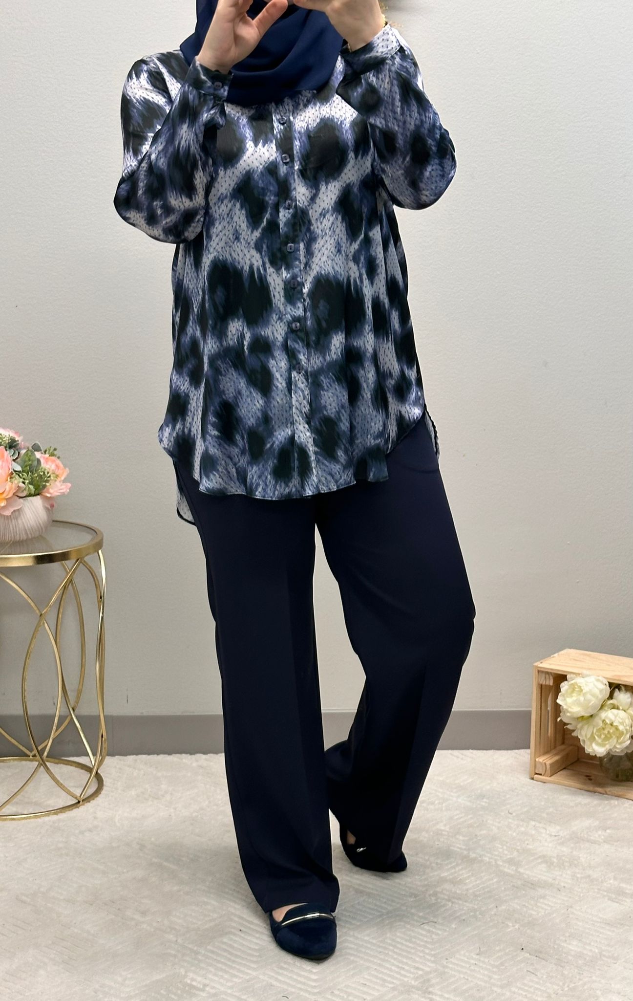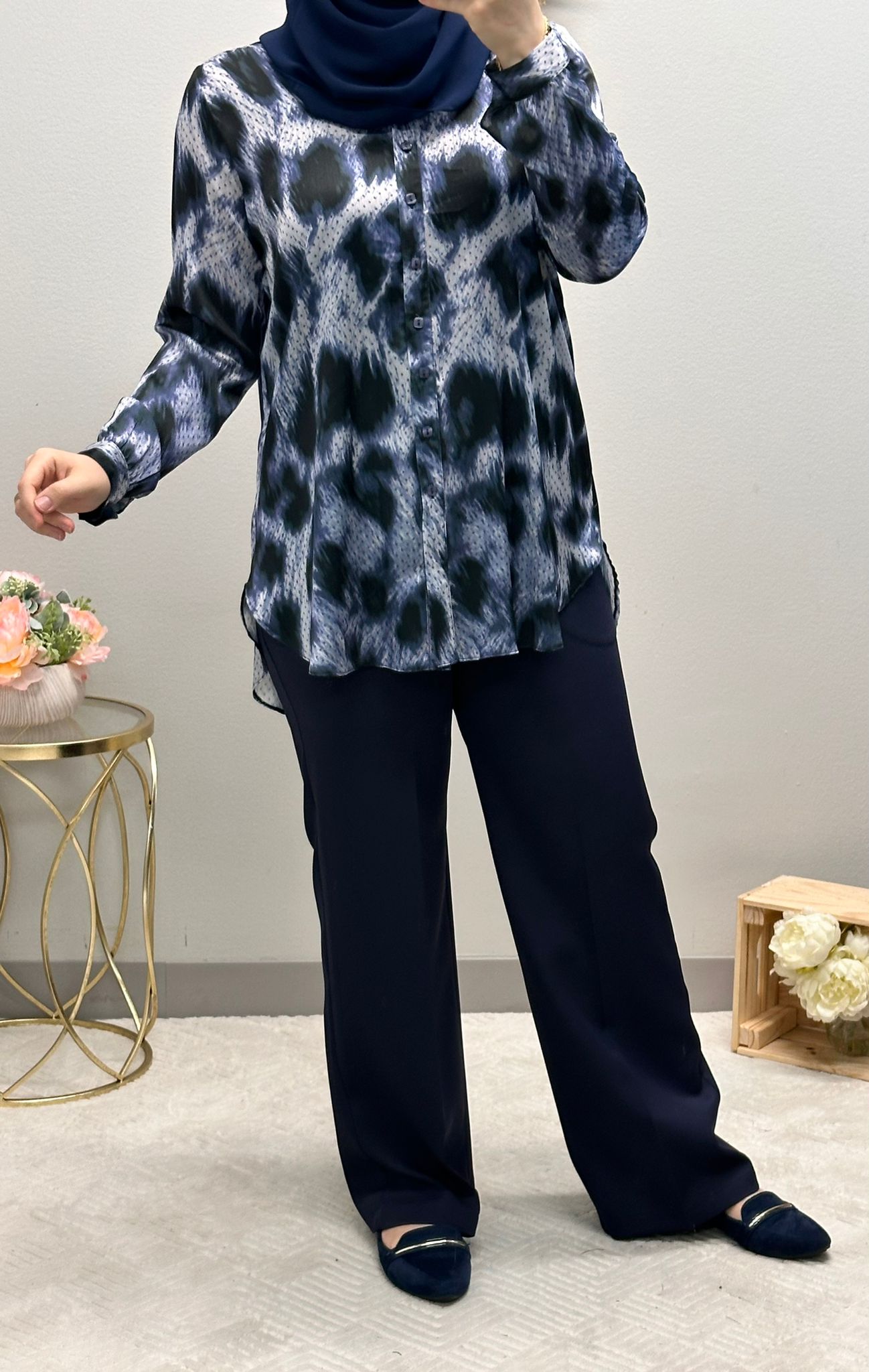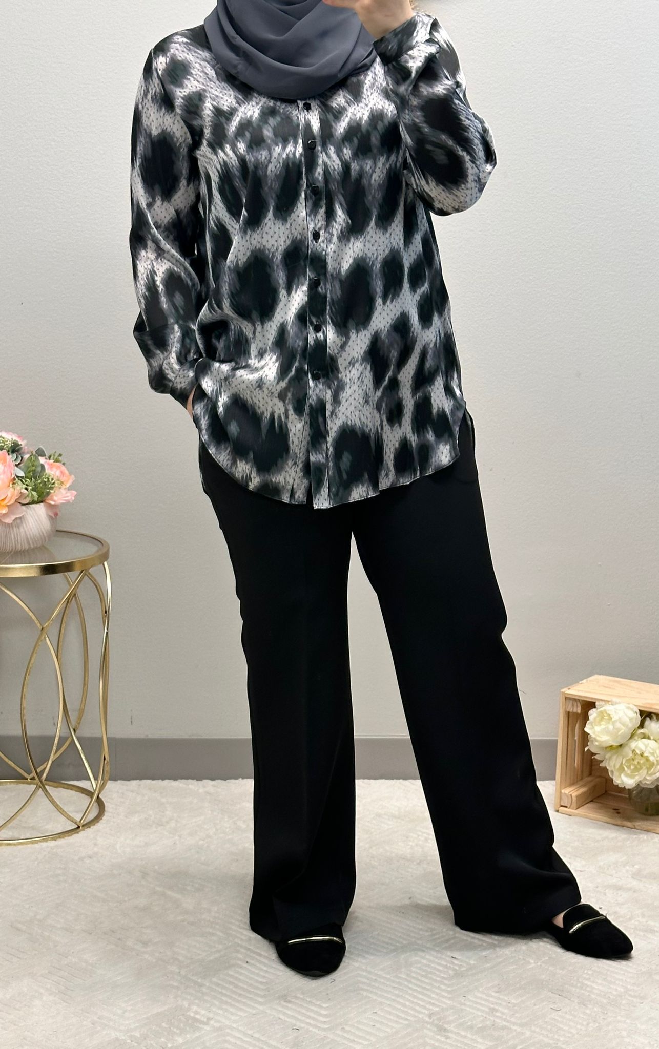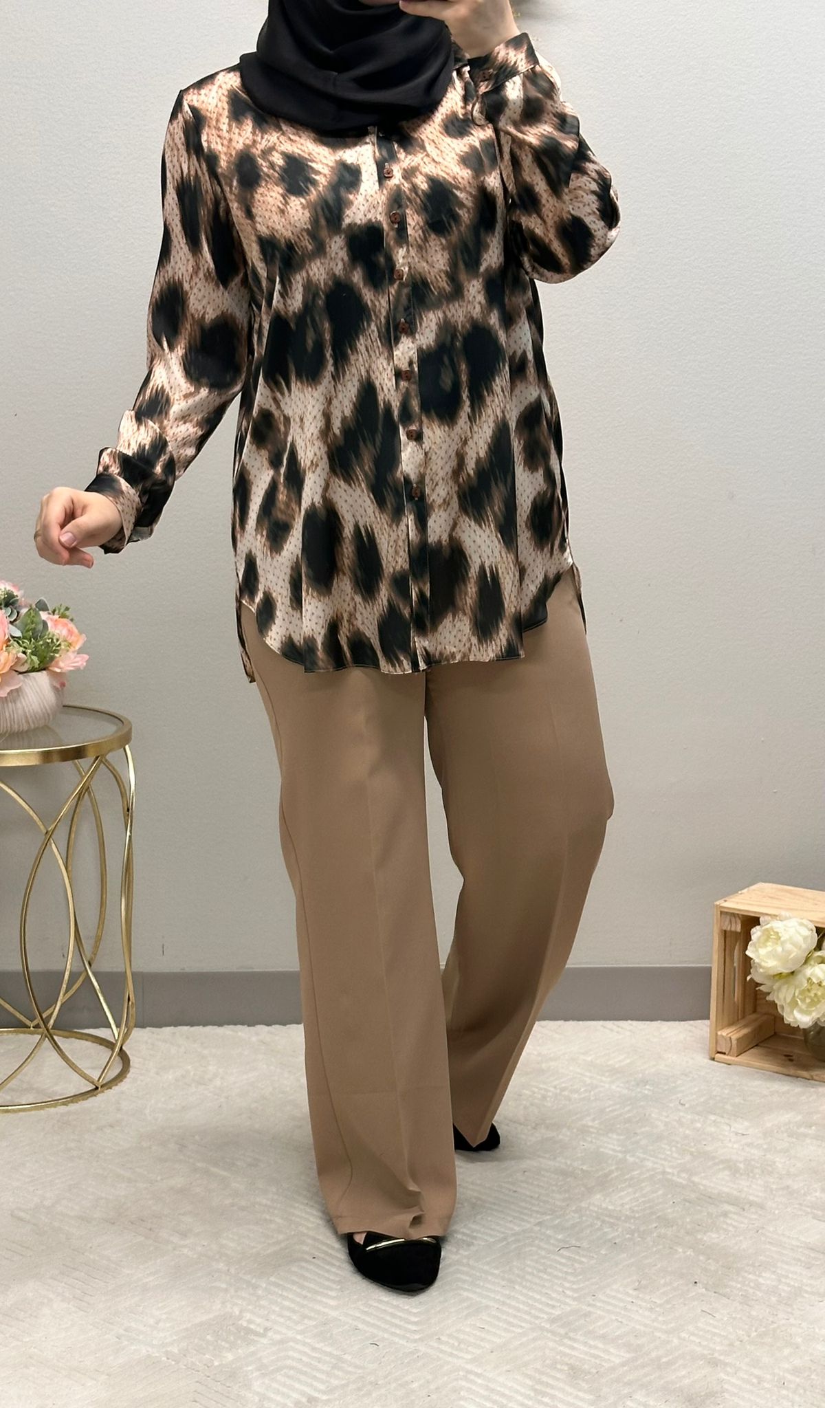 The shirt boasts a timeless design with front buttons, offering both sophistication and ease of wear. Its unique tiger pattern adds a touch of personality, making it a standout choice for any occasion.
