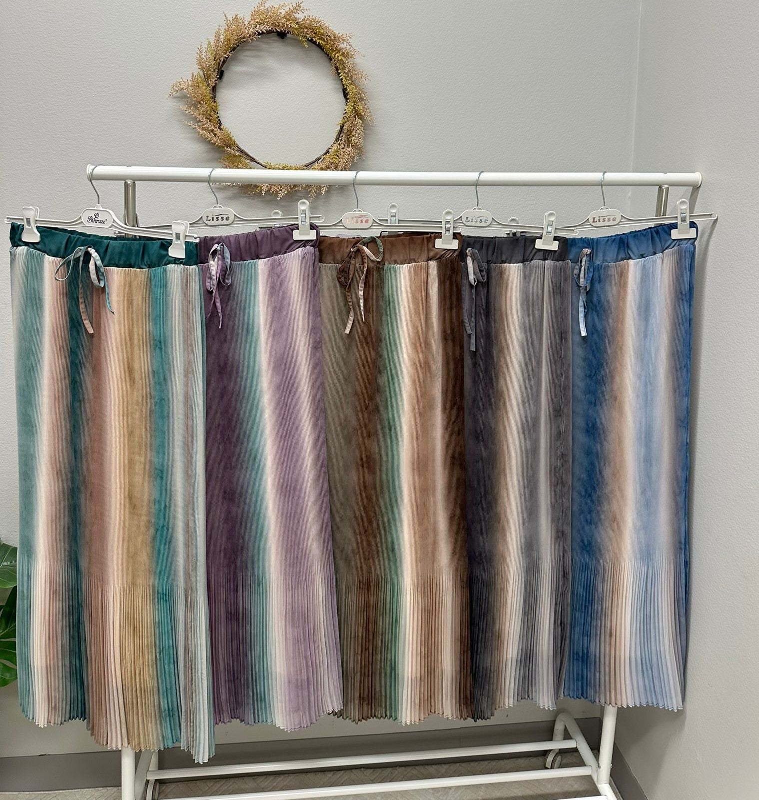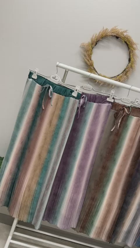 Infuse vibrancy into your wardrobe with our Colorful Pleated Skirt, featuring an Elastic Waistband Belt. This playful yet sophisticated skirt boasts a rainbow of hues in a stunning array of pleats, adding a dynamic and eye-catching element to your ensemble.