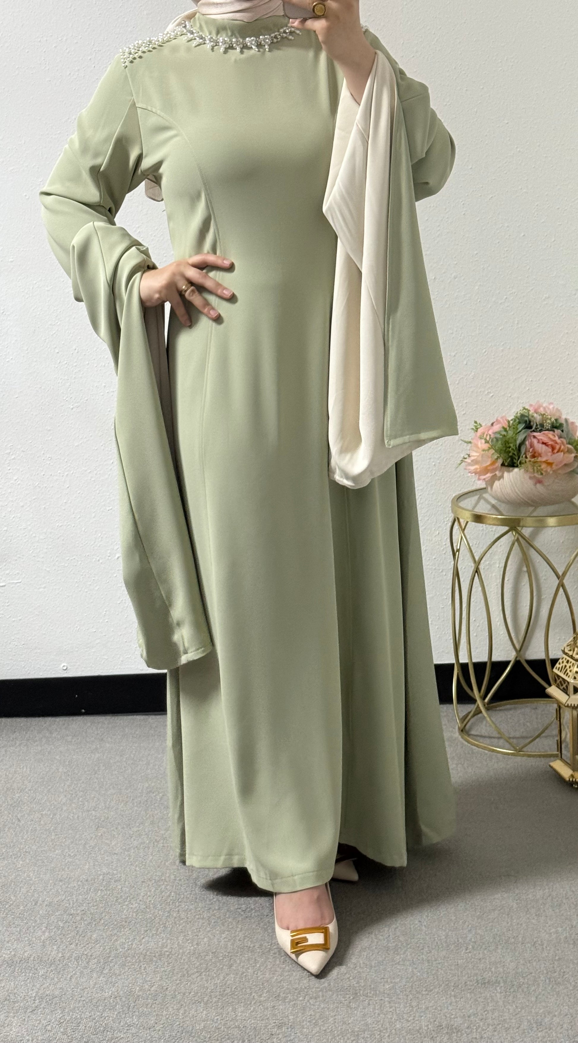 Pearl detail on shoulder/long sleeves