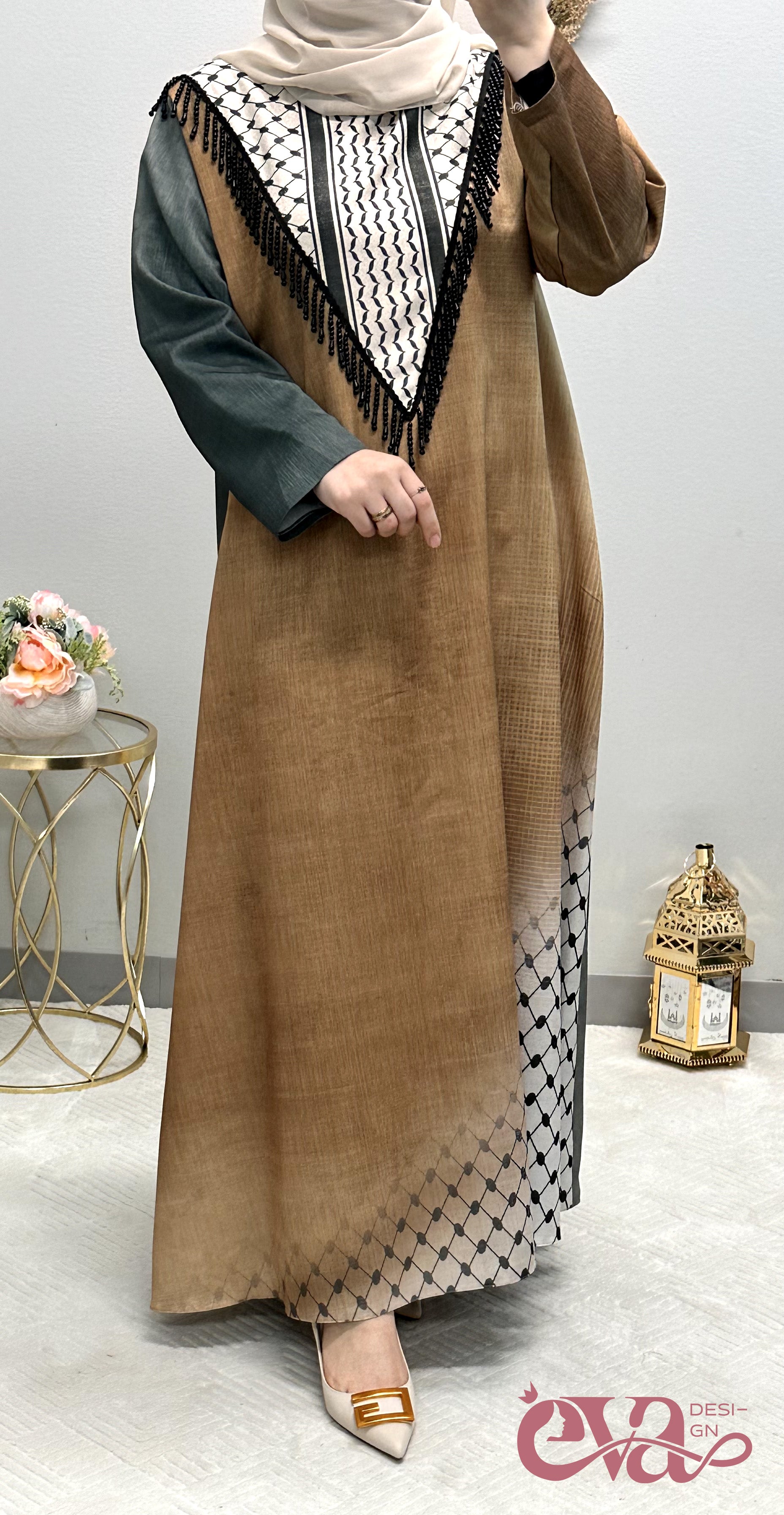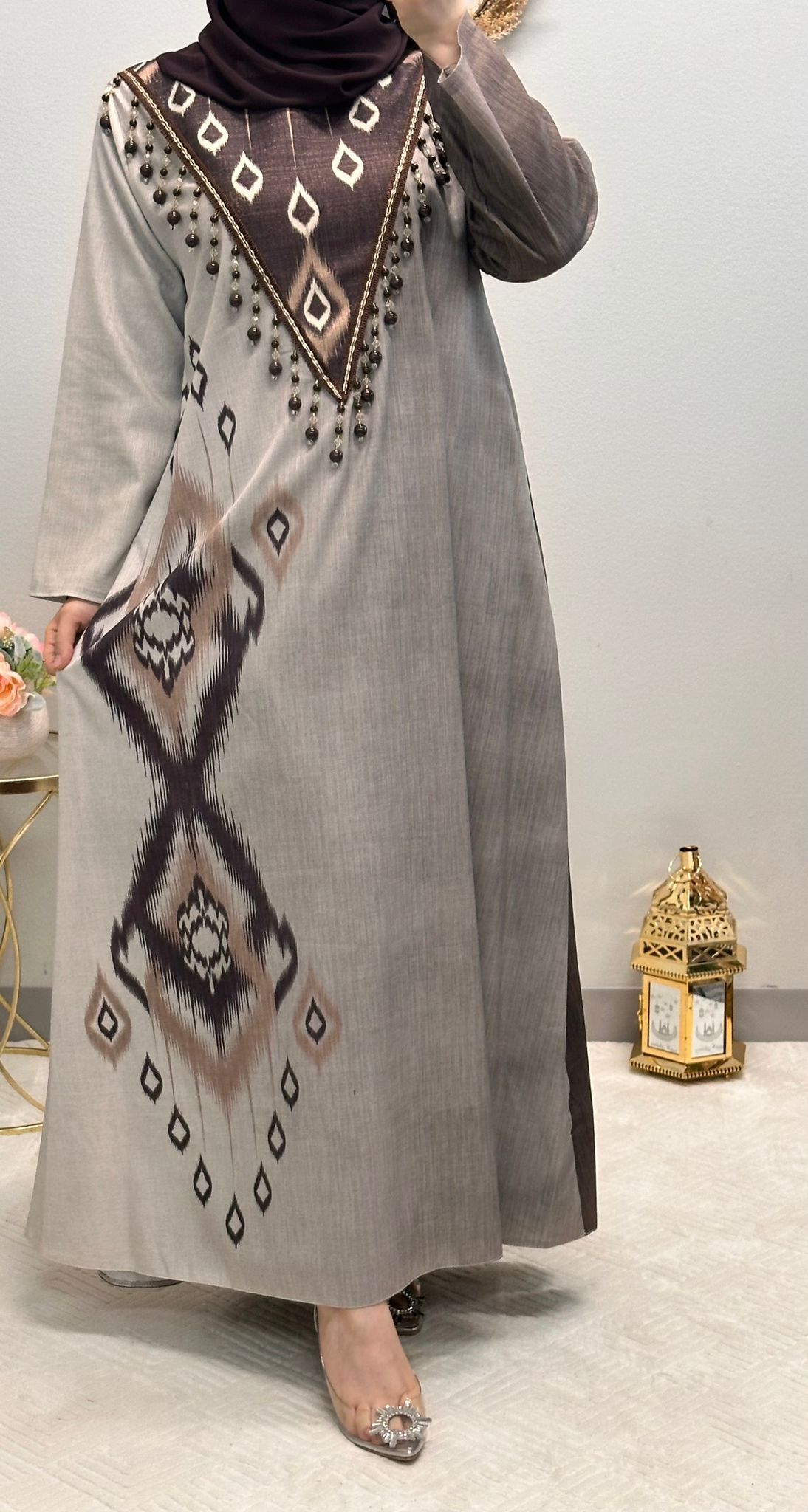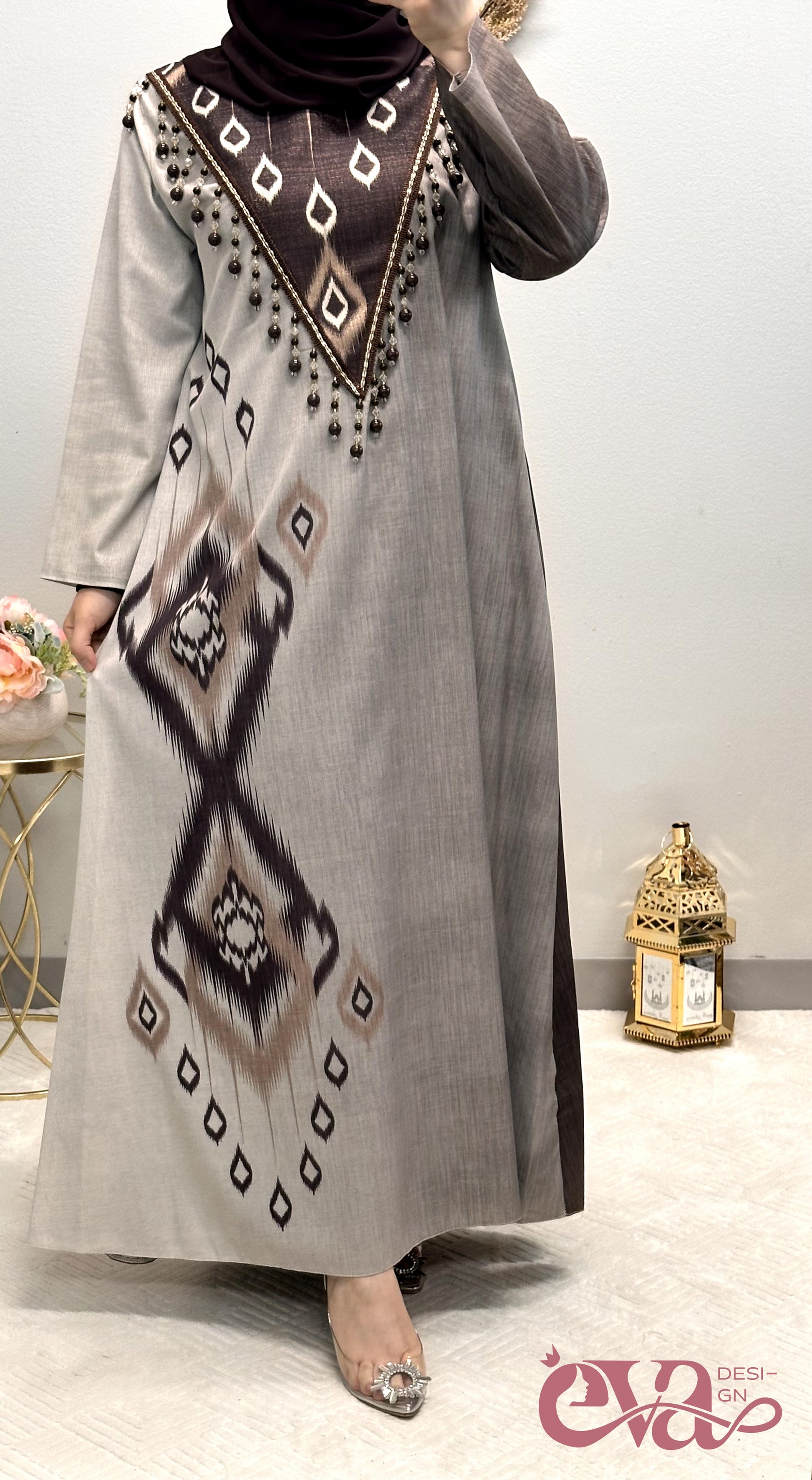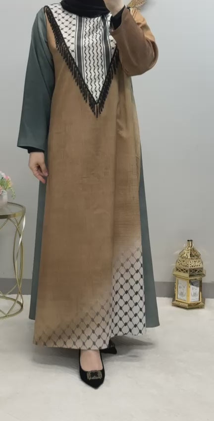 Embrace the beauty and tradition of Arabic fashion with this captivating printed abaya, designed to make you stand out with its unique and culturally rich patterns.