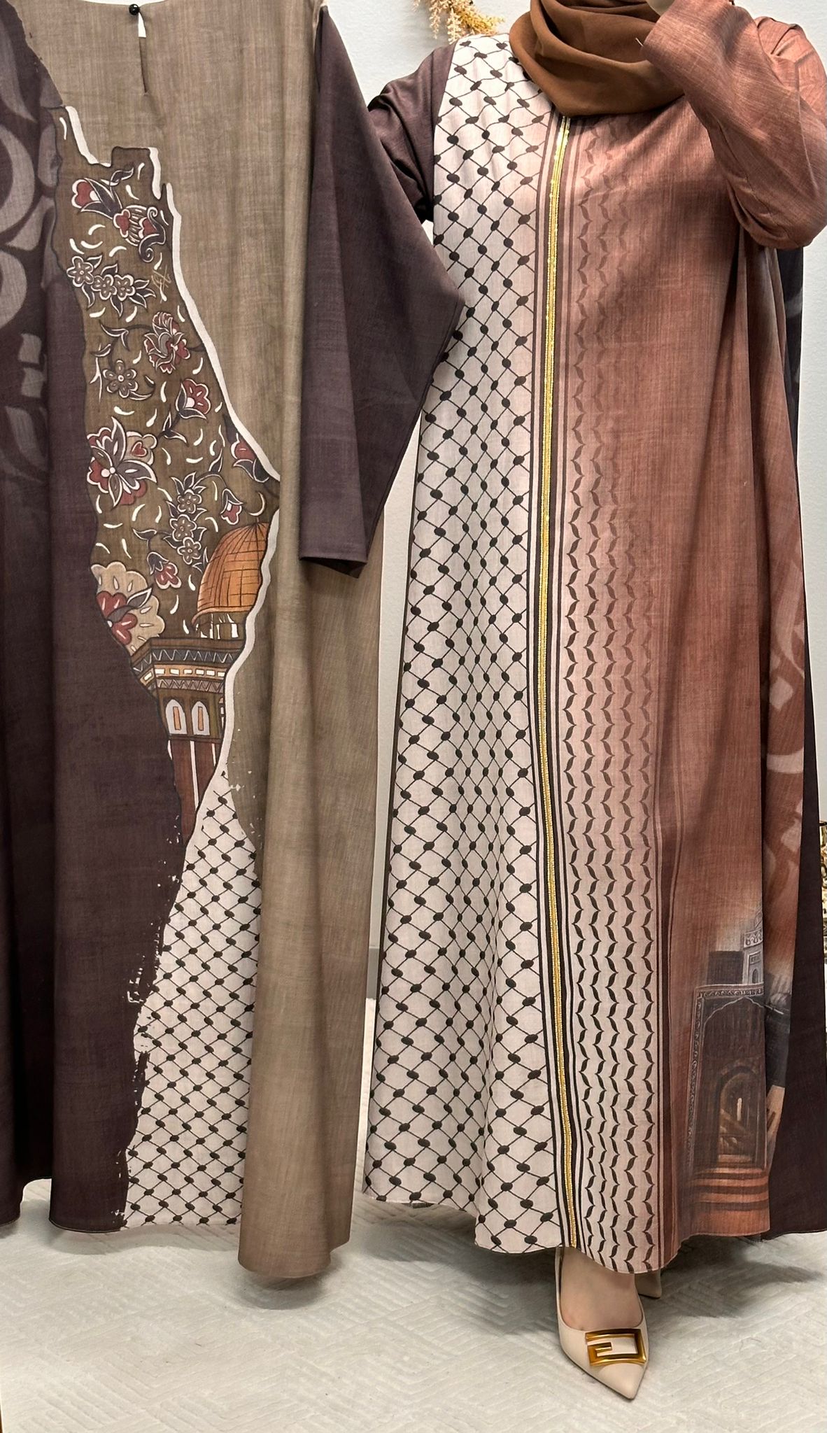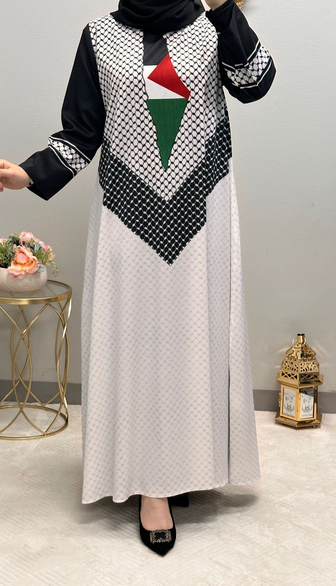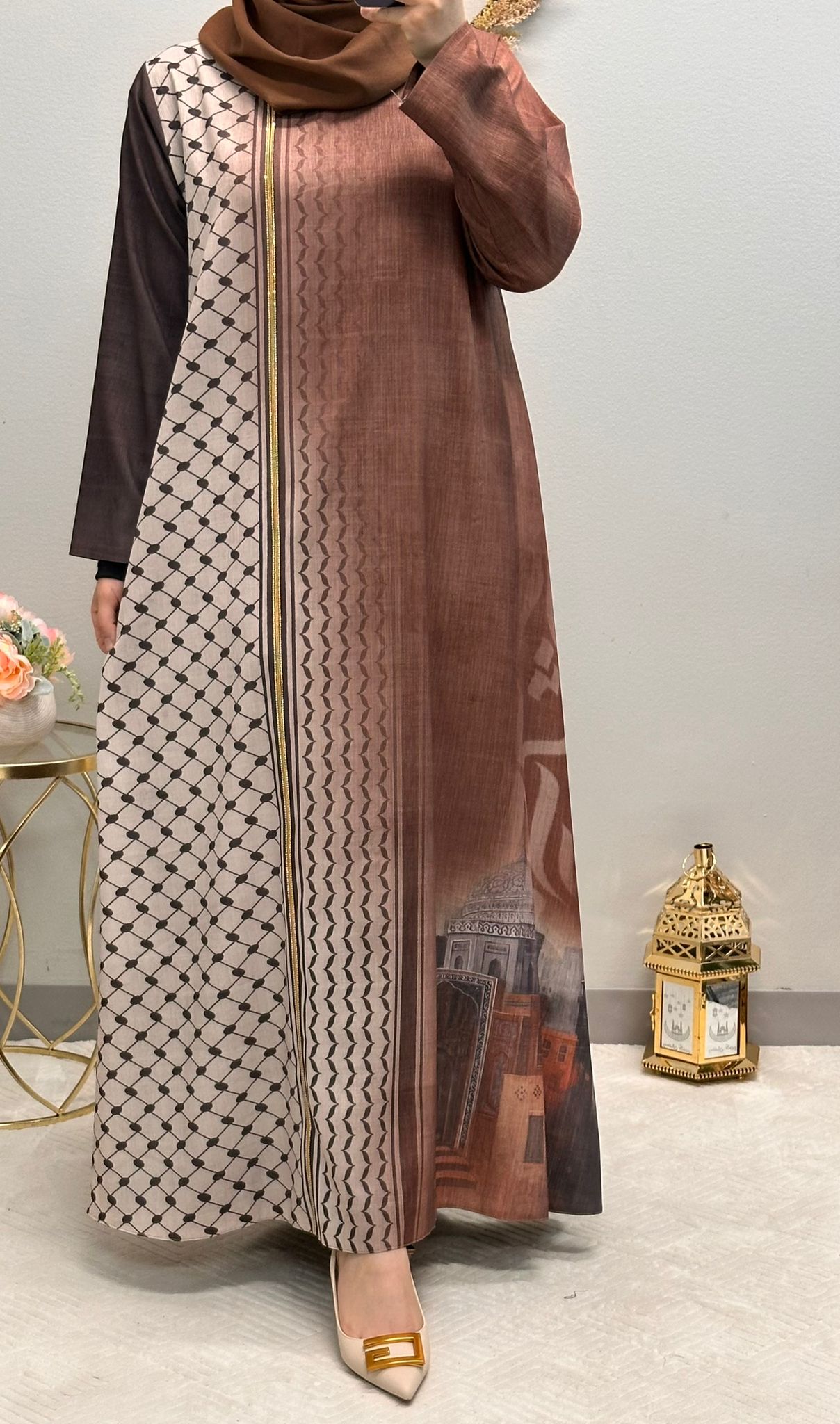 Embrace the beauty and tradition of Arabic fashion with this captivating printed abaya, designed to make you stand out with its unique and culturally rich patterns.