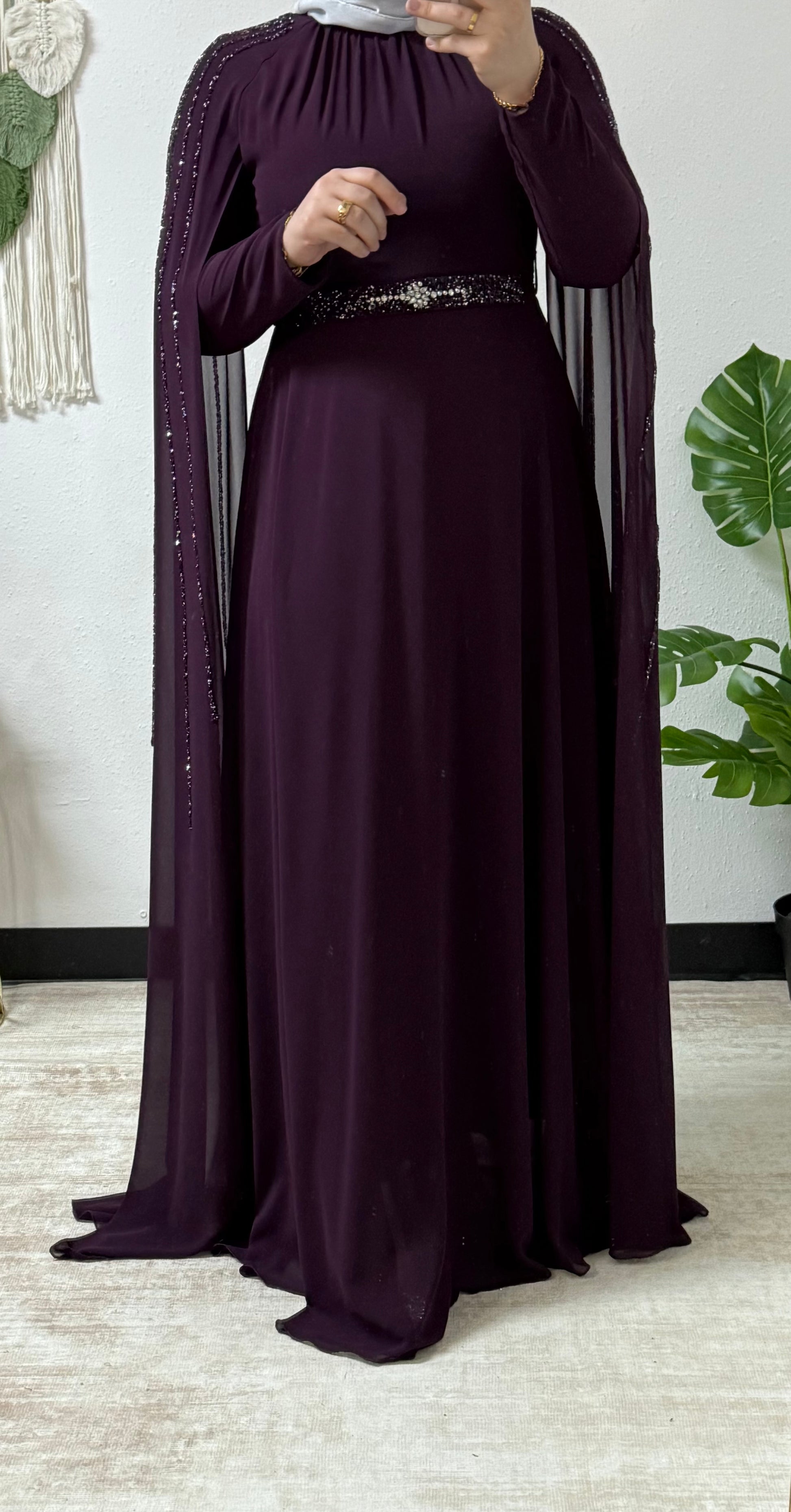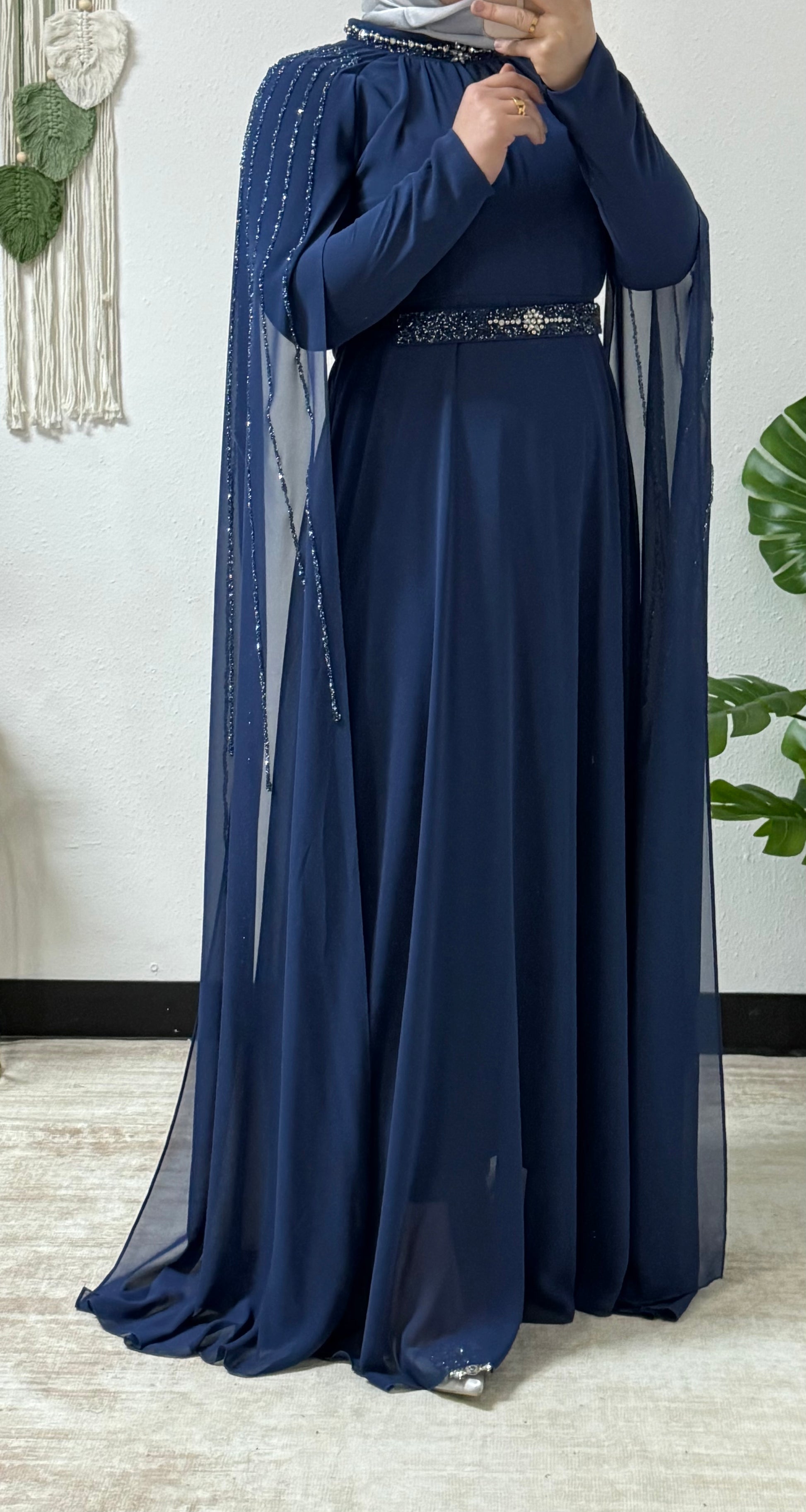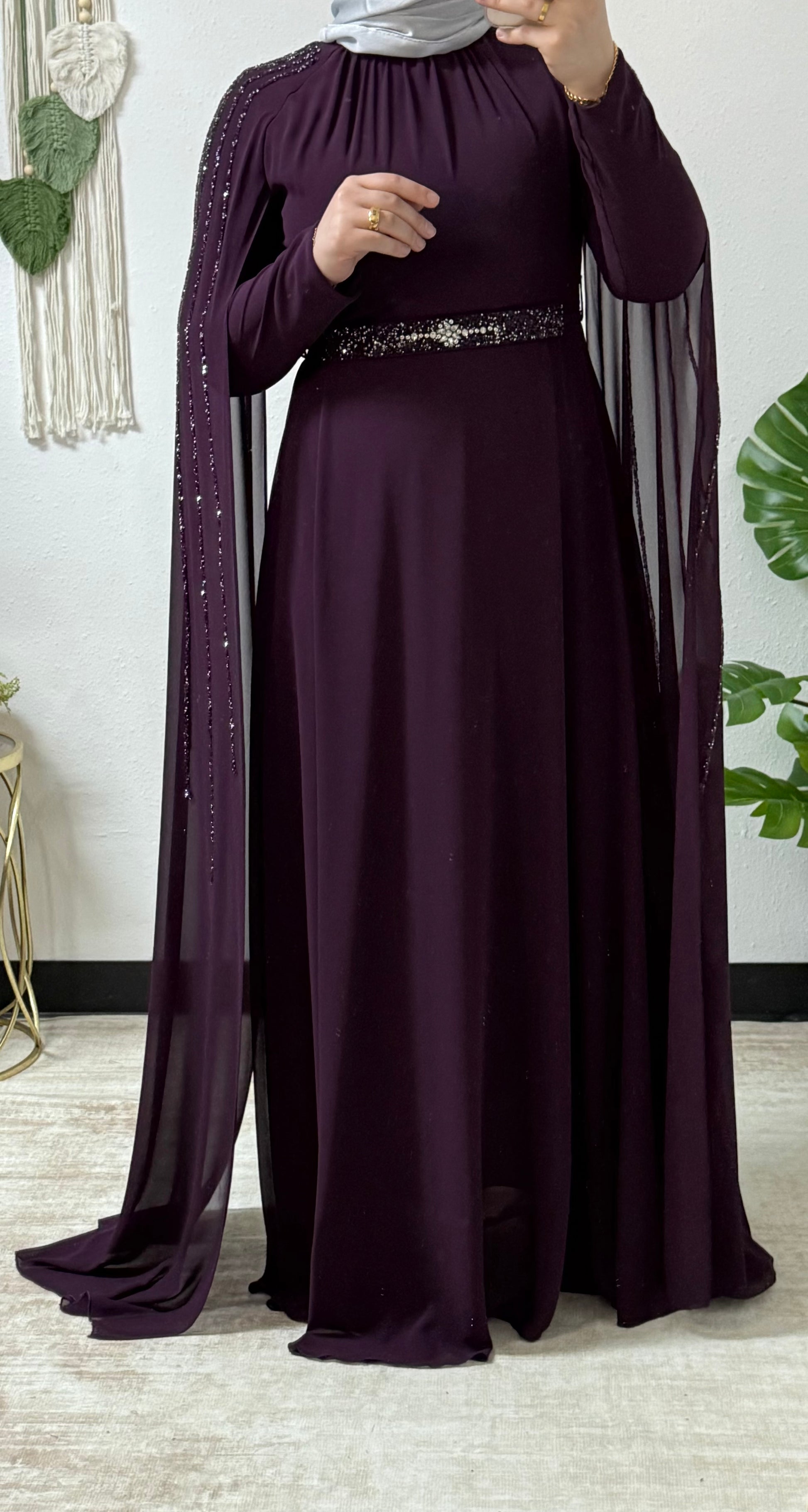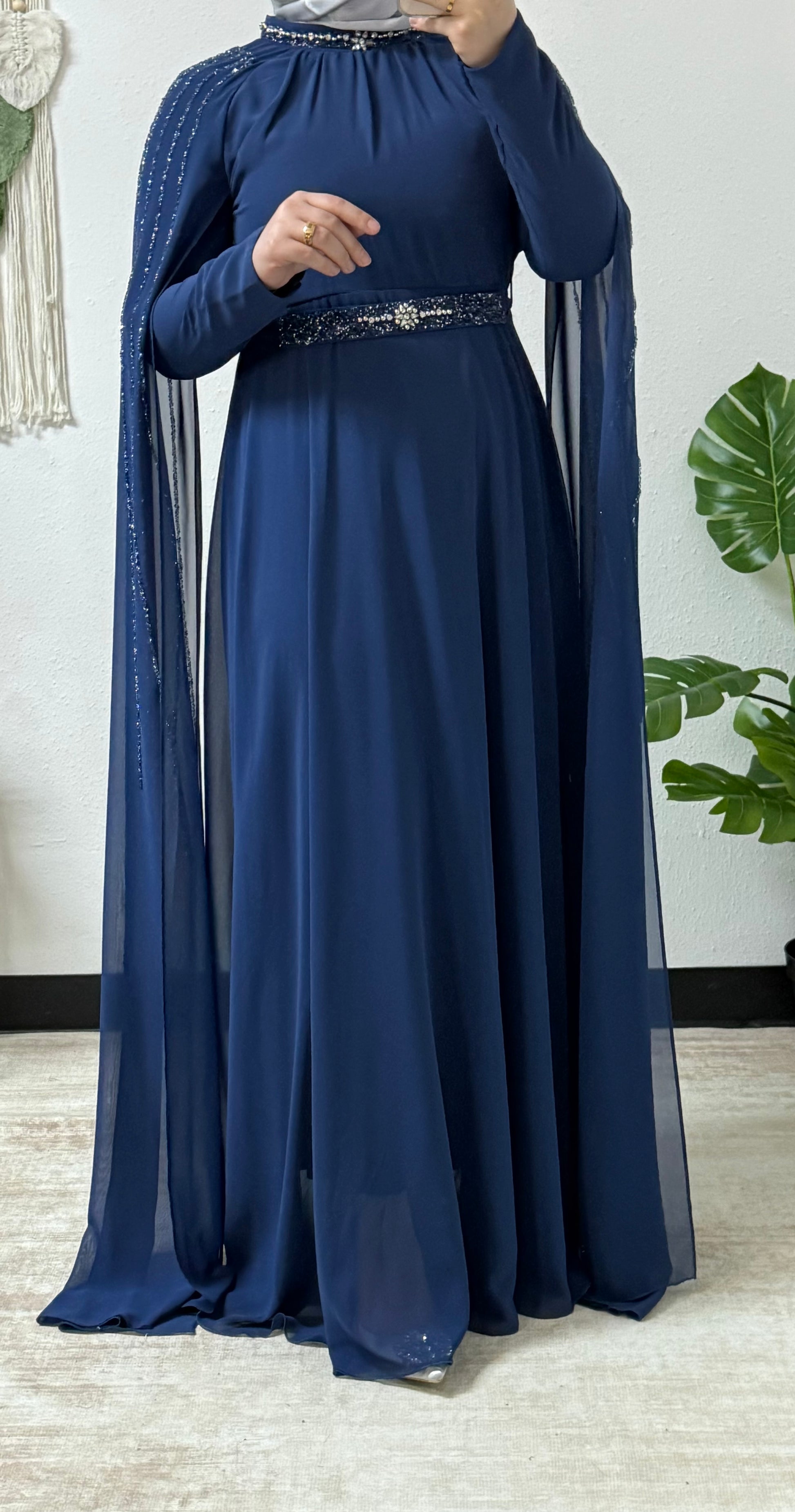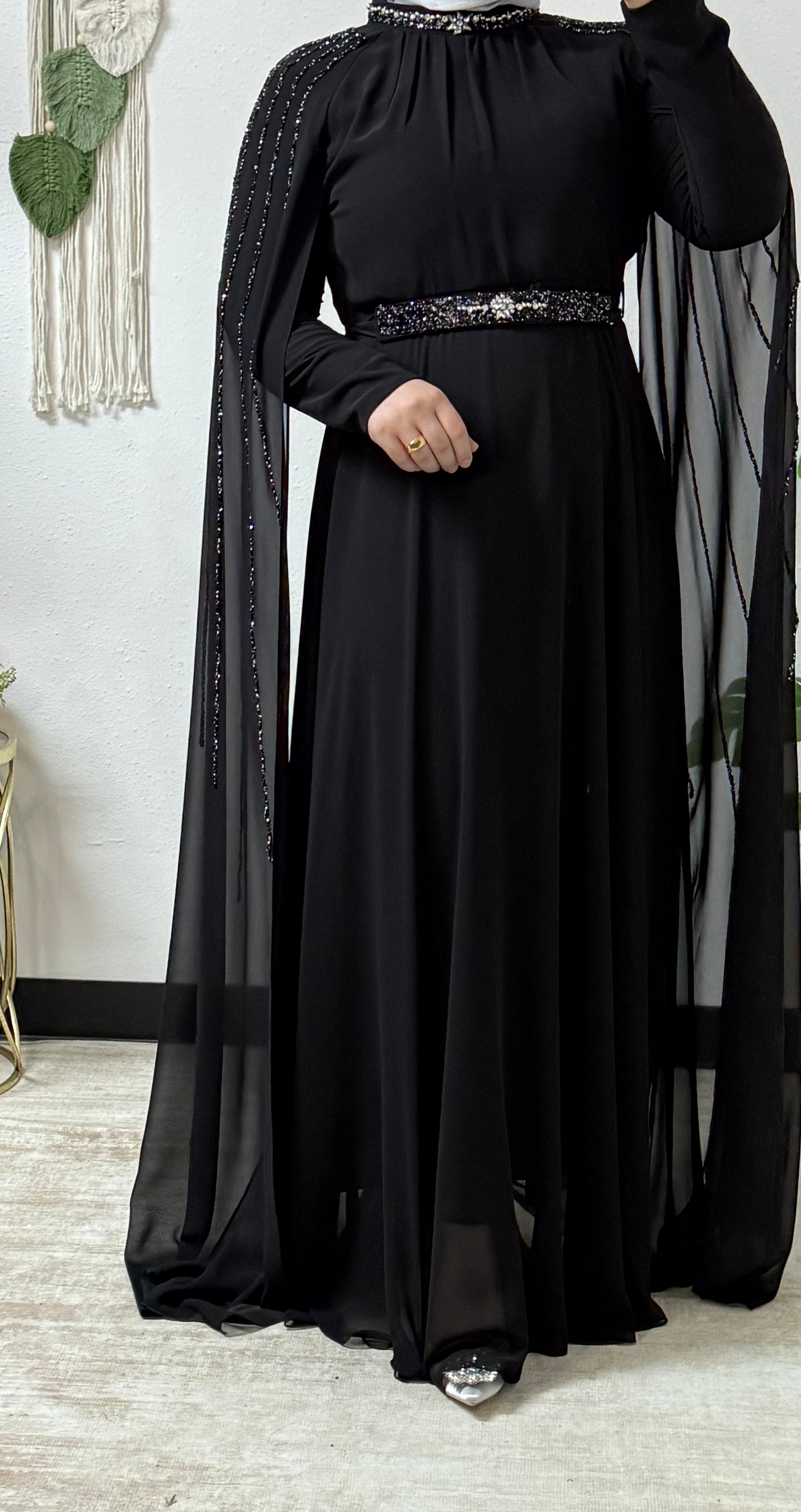 Sparkling beading long sleeves dress