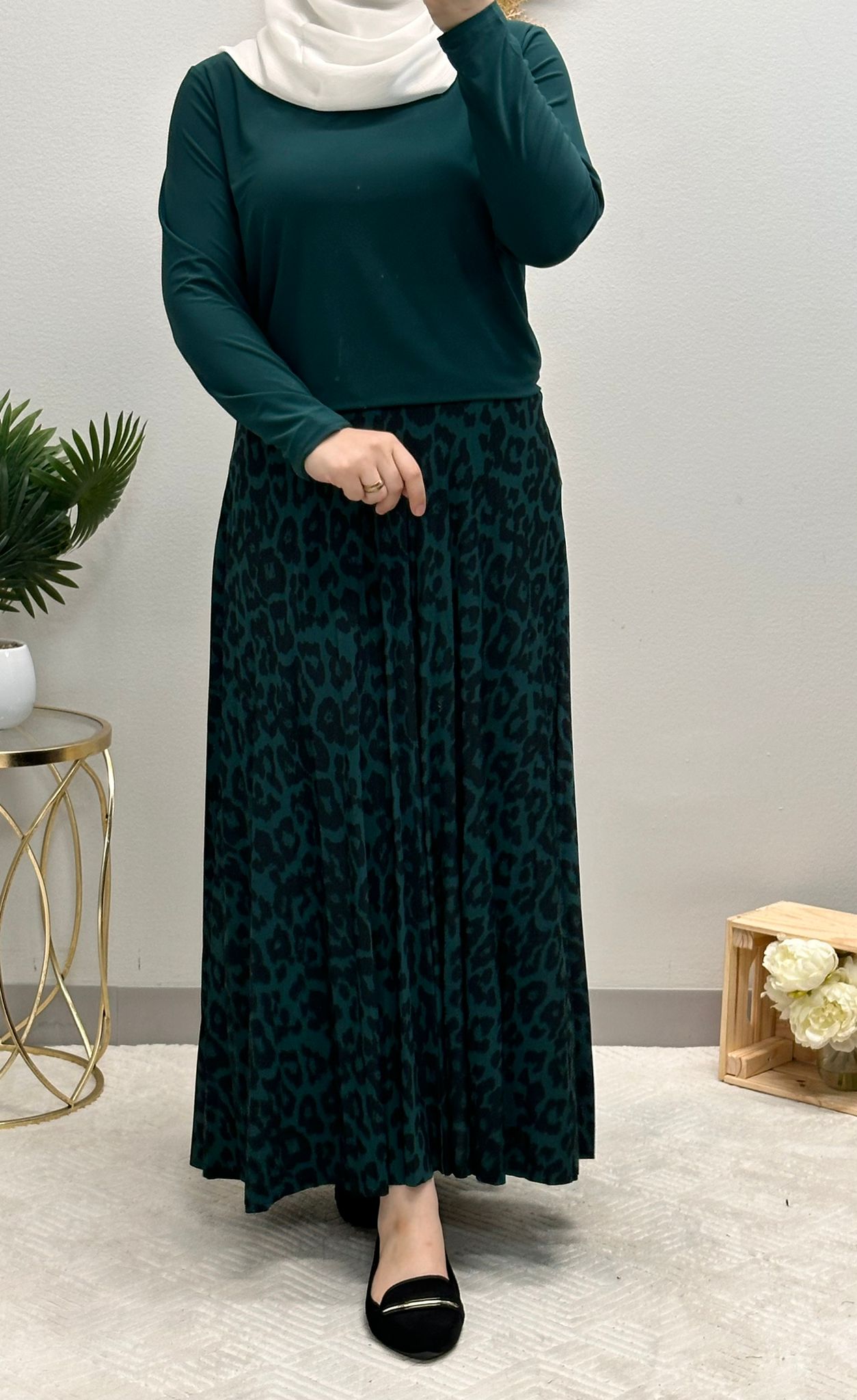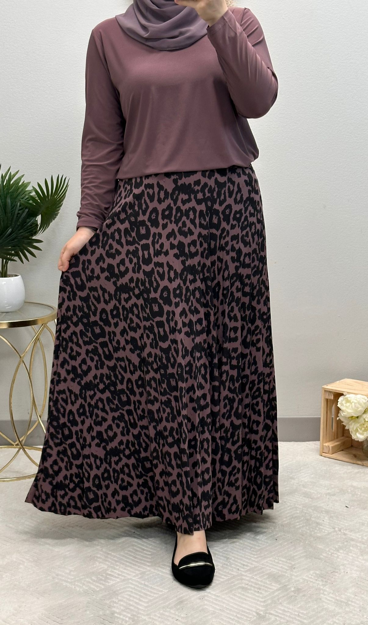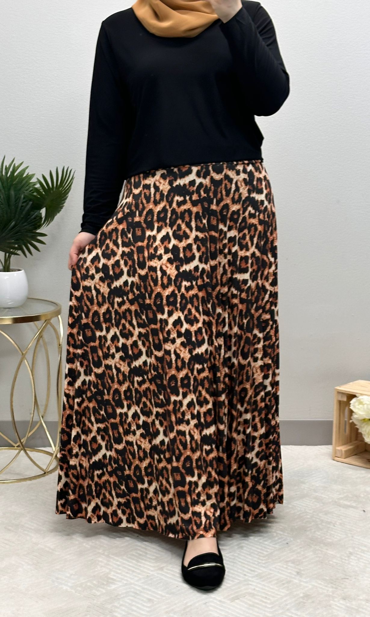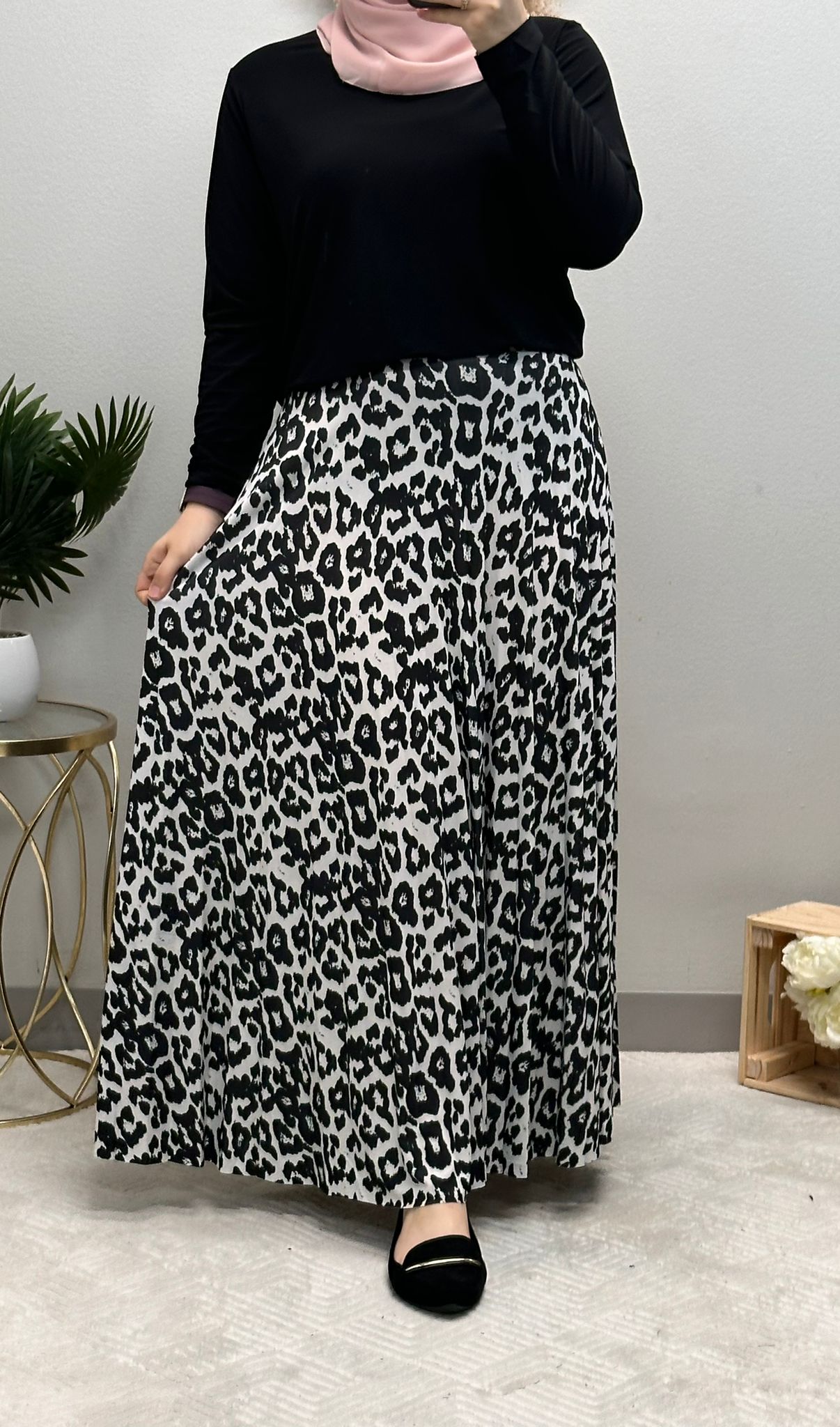 Introducing our Two-Piece Skirt Set, meticulously crafted from lycra, a soft and luxurious material that ensures comfort all day long. This set features a versatile combination of a plain top and a beautifully printed tiger pattern skirt, offering both elegance and style.