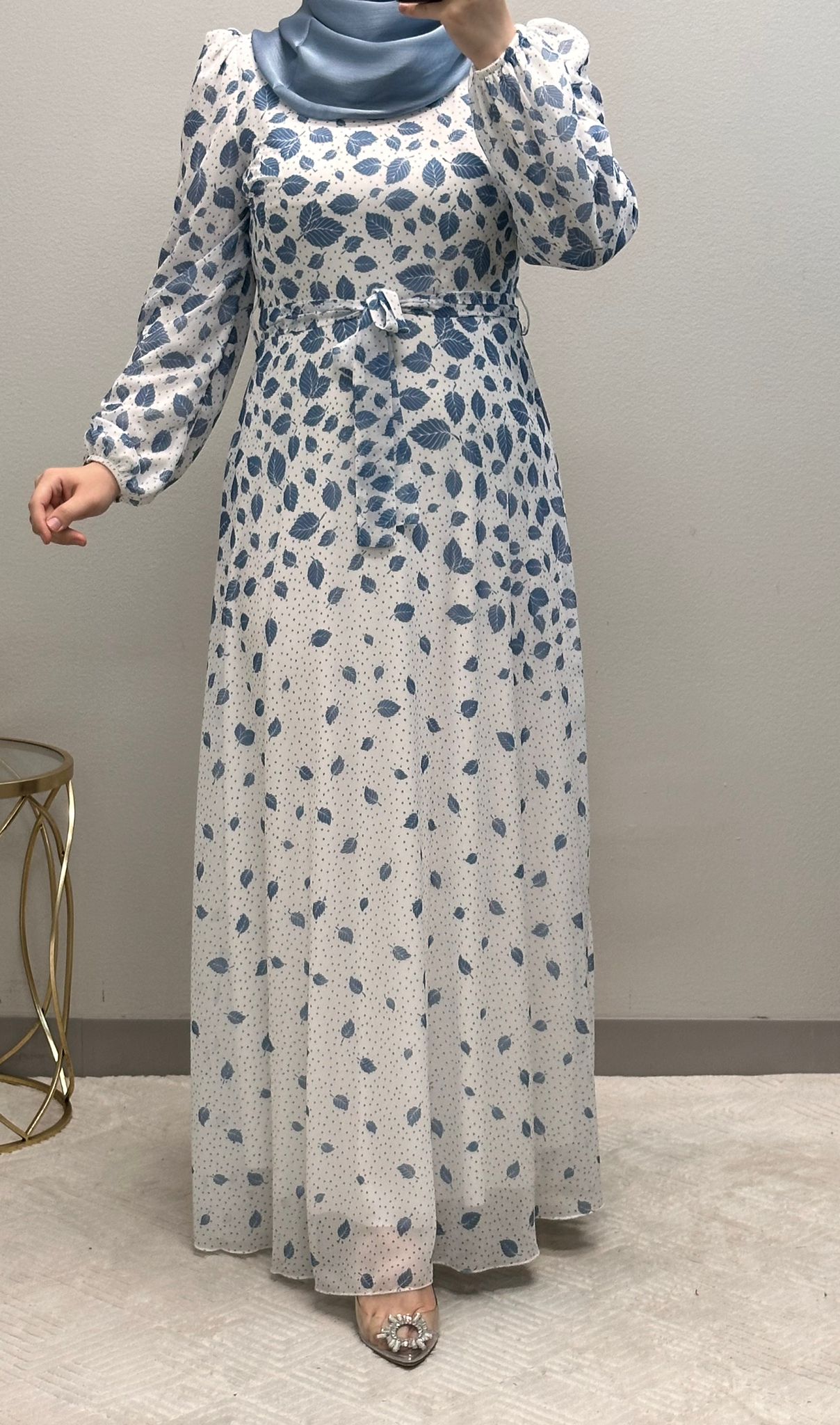 Exude elegance in our maxi length chiffon dress, fully lined for comfort. Featuring a stunning and intricate feather print, this dress is sure to turn heads at any occasion