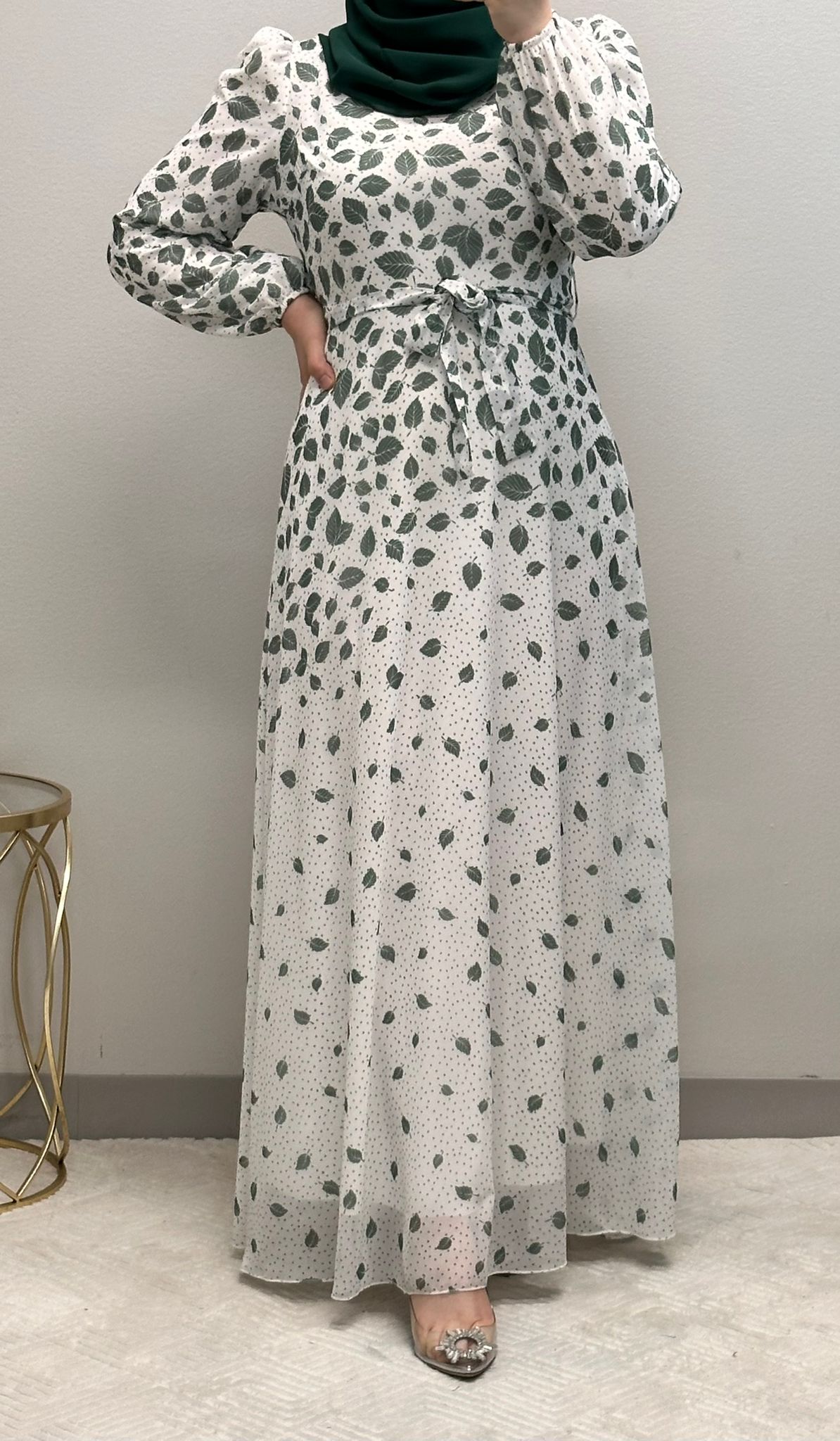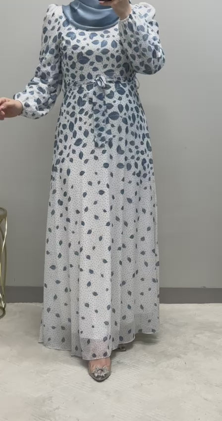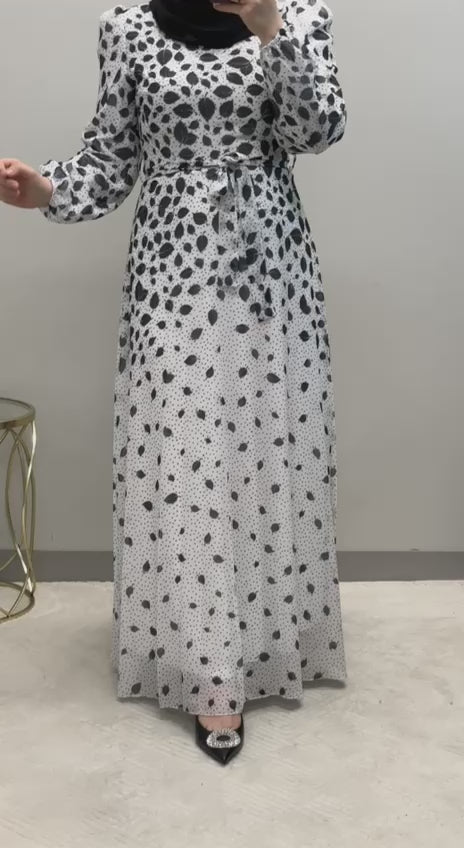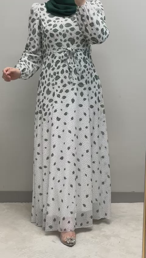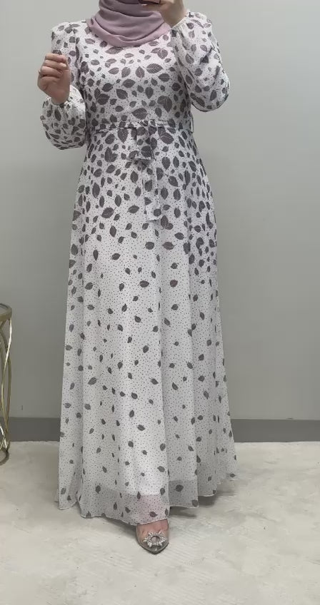Feather Print Chiffon Maxi Dress: Fully Lined